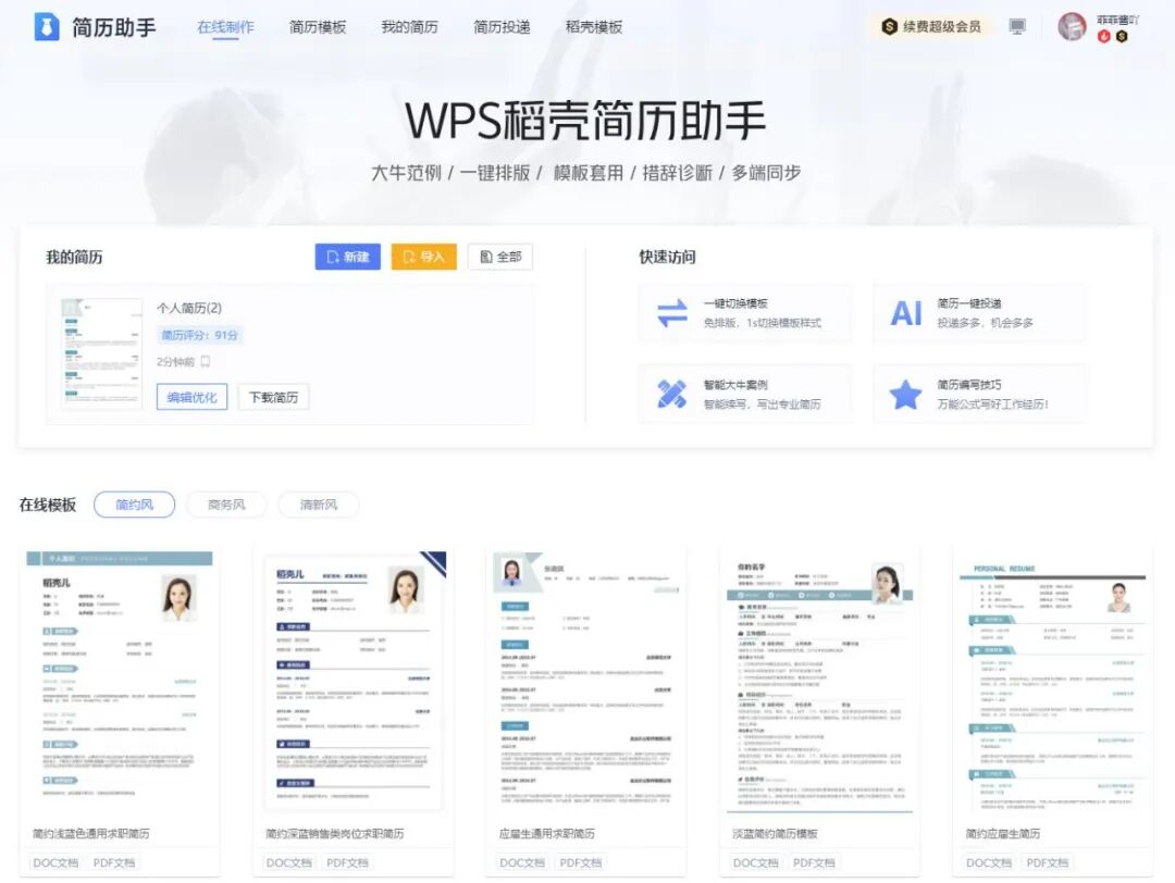 简历精修师500一次的服务,「WPS稻壳简历助手」WPS稻壳会员、WPS超级会员免费使用。