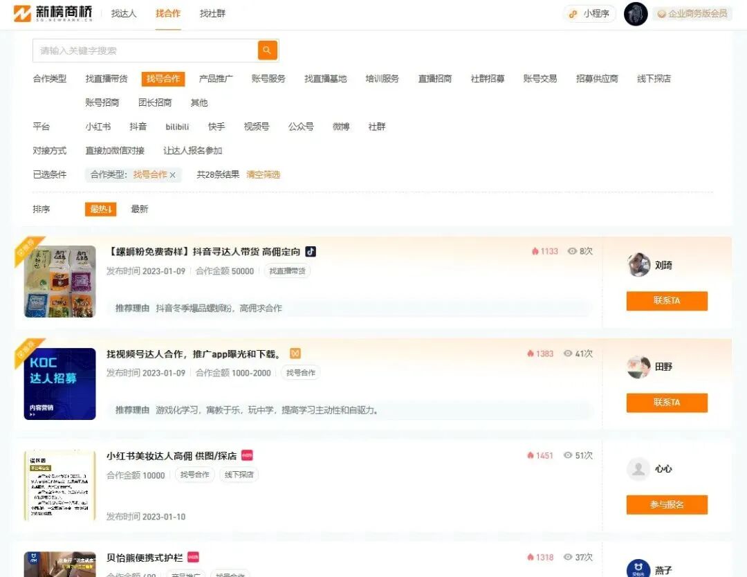 最近,为了更好的帮助企业实现多位同事协作找达人,我们进一步迭代了新榜商桥。