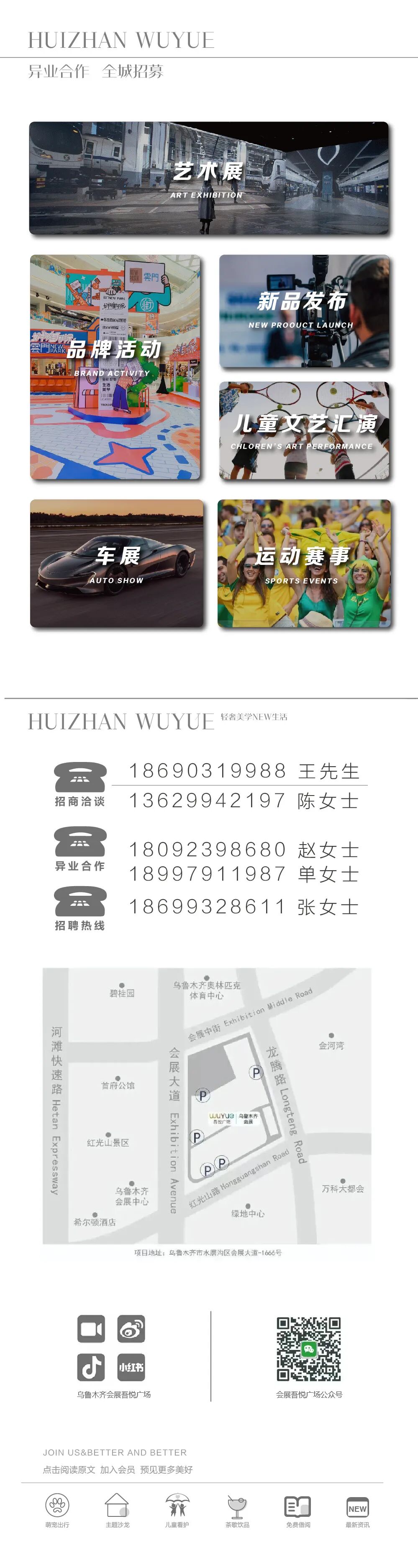 乌鲁木齐会展吾悦广场共引进320余家品牌,其中50余家新疆首店品牌,80余家区域首店。聚焦先锋首店、旗舰店、特色店,塑造品牌独特性和稀缺性。