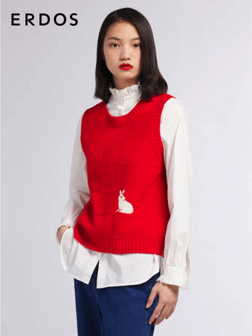 ERDOS 圆领纯羊绒提花生肖兔背心