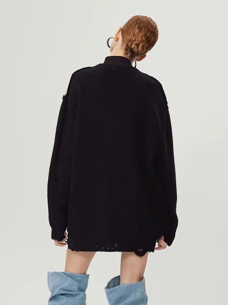 兔年当然要穿兔兔啦!不喜欢太过鲜艳的姐妹这件毛衣太适合啦~做旧工艺复古时尚,局部的手钩工艺,肌理丰富,结合做旧磨损线迹的设计,廓形宽松舒适,又酷又可爱。