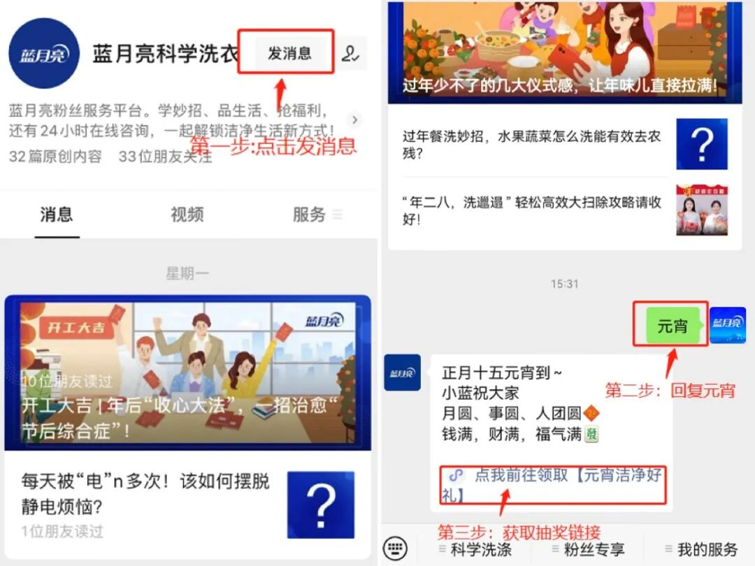 奖品明细:蓝月亮至尊生物科技除菌去味洗衣液,660g,价值79元,共计3瓶;蓝月亮免洗抑菌洗手液,50ml,价值19.9元,共计6瓶。(价值参考来源于蓝月亮月亮商城2022年1月5日定价)。规则说明:一经发现刷赞行为将取消其中奖资格,中奖名额往后顺延。领奖规则:收到本公众号的中奖回复后,请中奖用户在2022年2月23日24点前回复您的姓名、手机号码、地址等信息,逾期回复视为自动放弃领奖。奖品将于中奖结果公布后的30个工作日内寄出。如有疑问,请咨询@助手小蓝(微信号:bluemoonzyhd)。