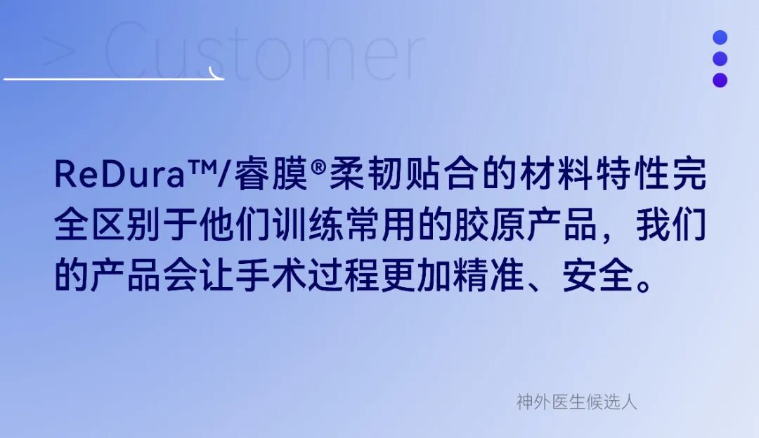 ReDura™/睿膜®作为迈普封闭防漏解决方案“元老级”产品,以“柔韧贴合,有序降解;科技仿生,迅速修复”的特性备受推崇,获得了国内外医生一致好评。