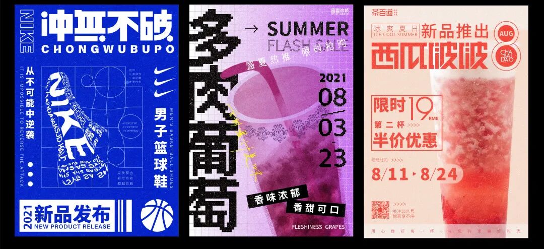 学会分析版面调性,用文字分解让版面空间扩大化,学习速战速决的图文混排!这种风格能够增加海报版面的层次,在一定程度上可以突出重点产品或者信息!