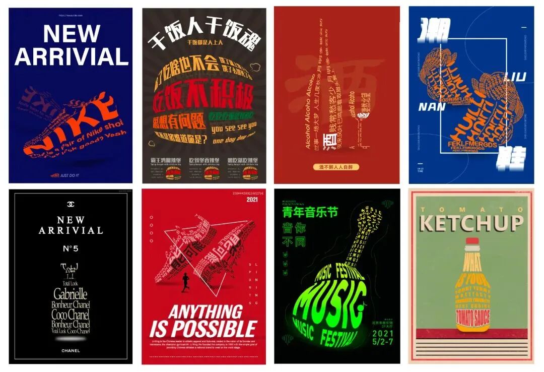 这类风格的设计运用较广,可以利用文字做出产品的图形,增加海报的设计感!