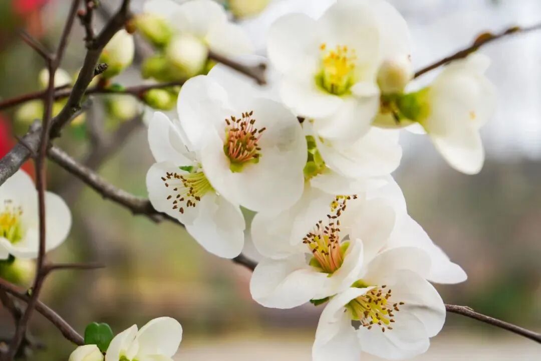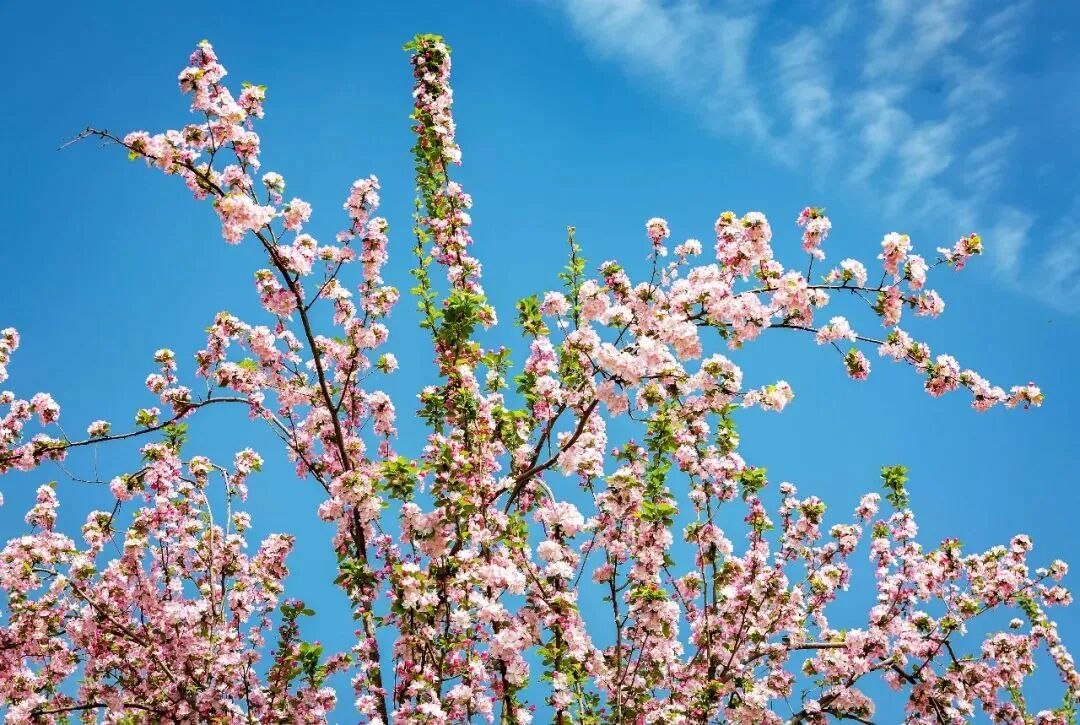 “报春海棠”花开最早,比如龙形海棠、木瓜海棠、贴梗海棠,于2月下旬-3月上旬开始逐渐进入盛花期,花团锦簇,颜色艳丽,重重花瓣在在阳光里潋滟流光,分外妖娆娇艳,现在正是观赏的好时机;