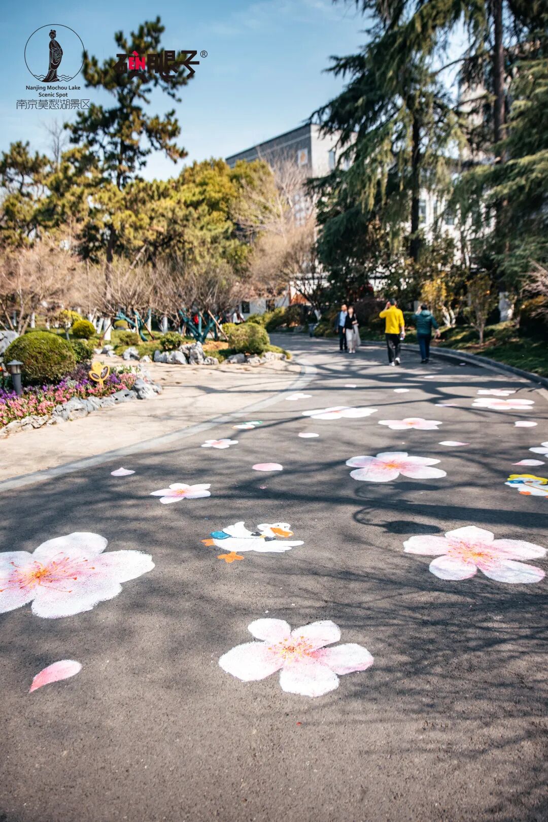 春意活力海棠的创意装置、道路沿途的超级口号打卡、森系奶盖云朵ins框艺术拍照点、粉粉粉的海棠花地绘,在莫愁湖每一步都是惊喜。