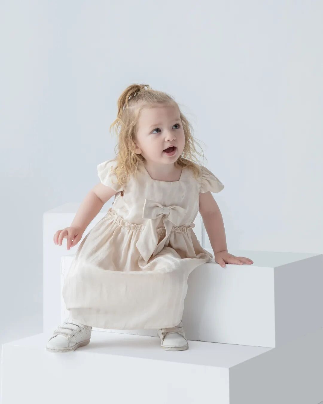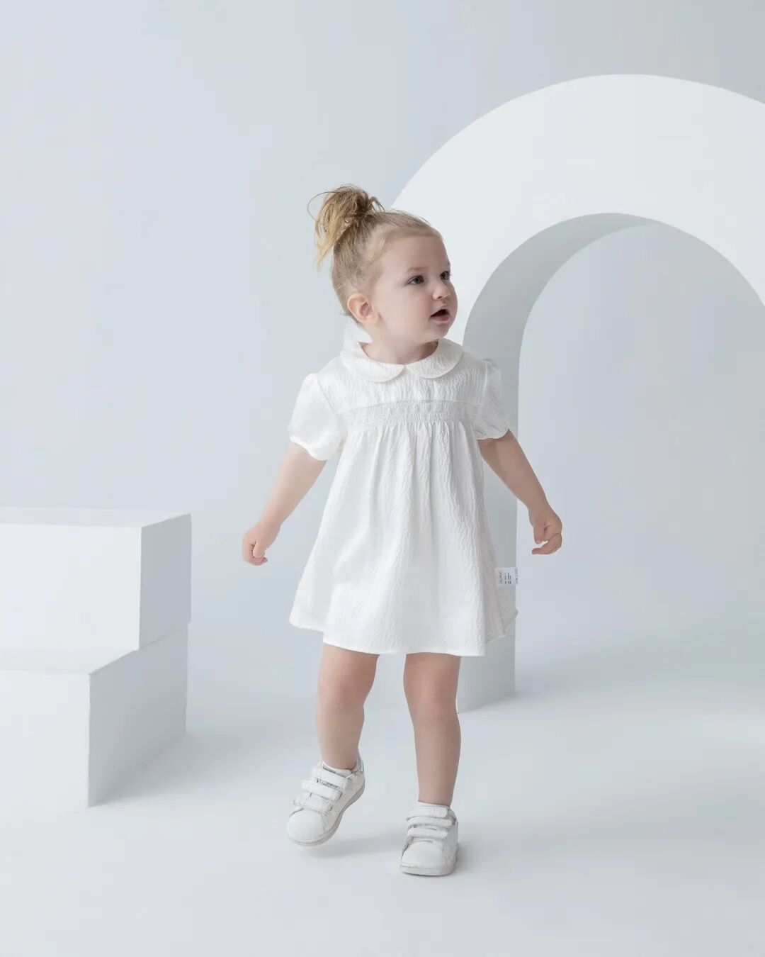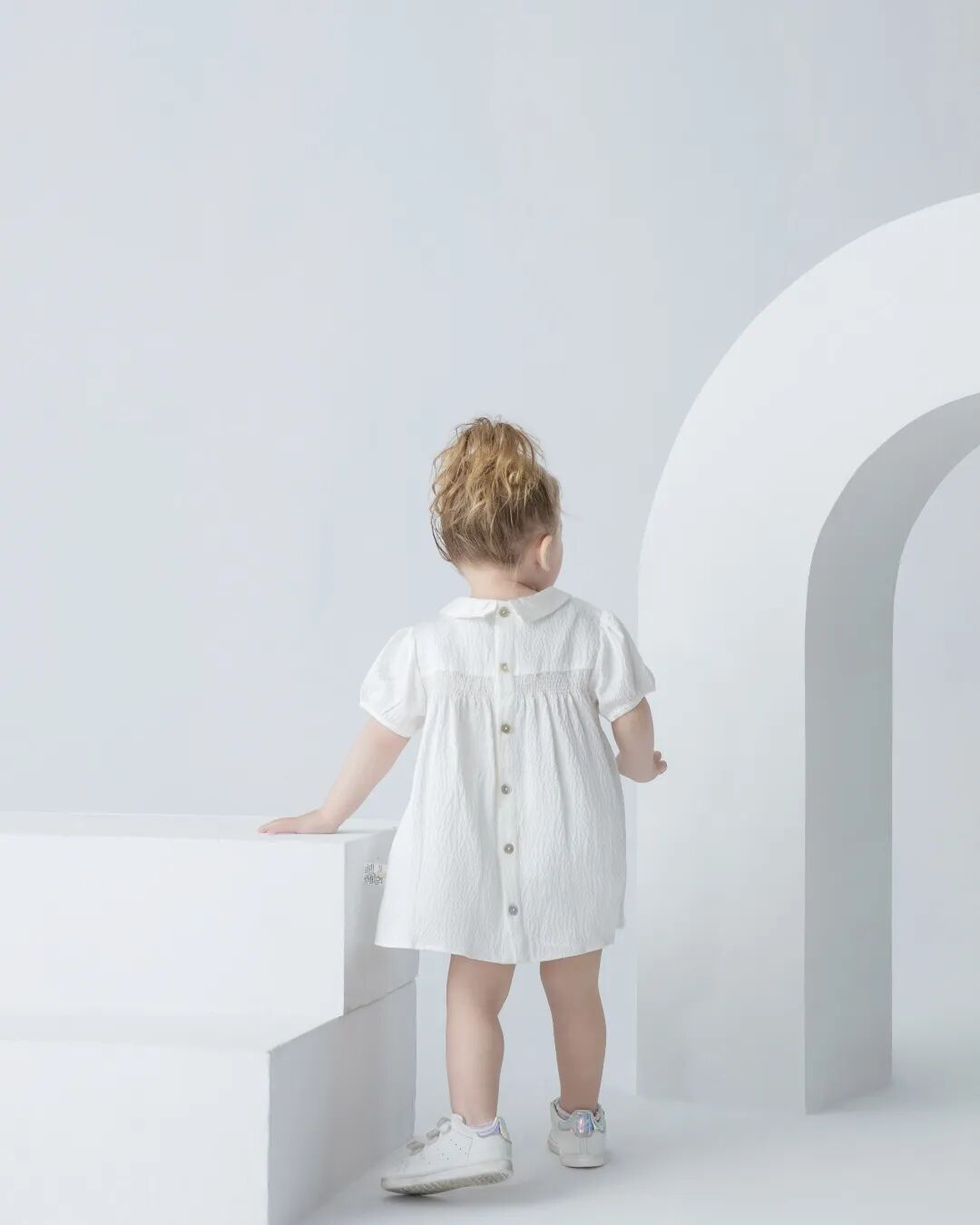 SaintBuD是源自意大利罗马的婴幼儿服饰品牌,倡导健康环保、极简风格的新生儿穿衣理念。选纯天然有机棉、Baby山羊绒、桑蚕丝、白鹅绒等原材料,融入时光与爱意,精细到一针一线。娇俏可爱的泡泡袖设计,蝴蝶结和褶皱的童真细节,和亲肤材质一起成为一件充满爱意的春夏短袖连衣裙,每一件SaintBuD都是令人怀念、富有情感记忆的衣服。