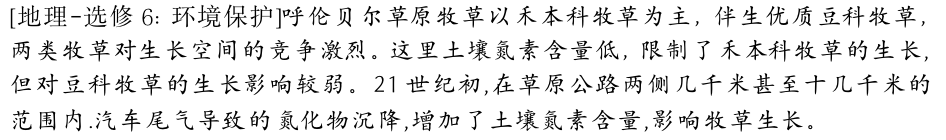 说明汽车尾气导致的氮沉降对呼伦贝尔草原公路两侧牧草的影响。(点击源回答查看参考答案)