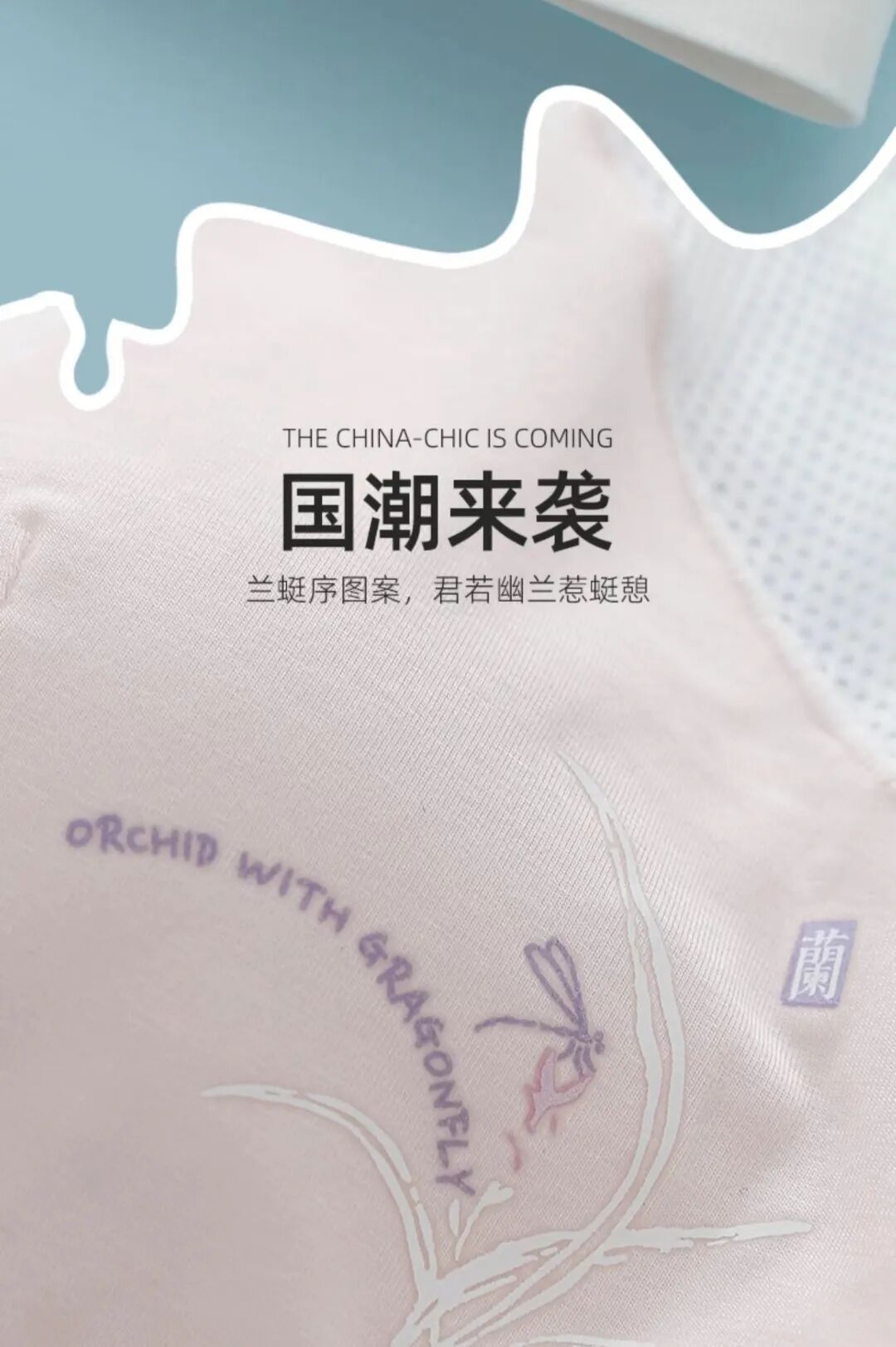 穿衣就像解谜,是藏在衣与身之间的感官游戏,为了找到自己的称心如意,费点力气也可以。而它,无需费力。兰花、蜻蜓与文字,组成「兰蜓序」灵动趣味图案,构筑视觉点缀,搭配清爽颜色,使得整件内衣时尚而优雅,君若幽兰惹蜓憩,传达美好寓意。