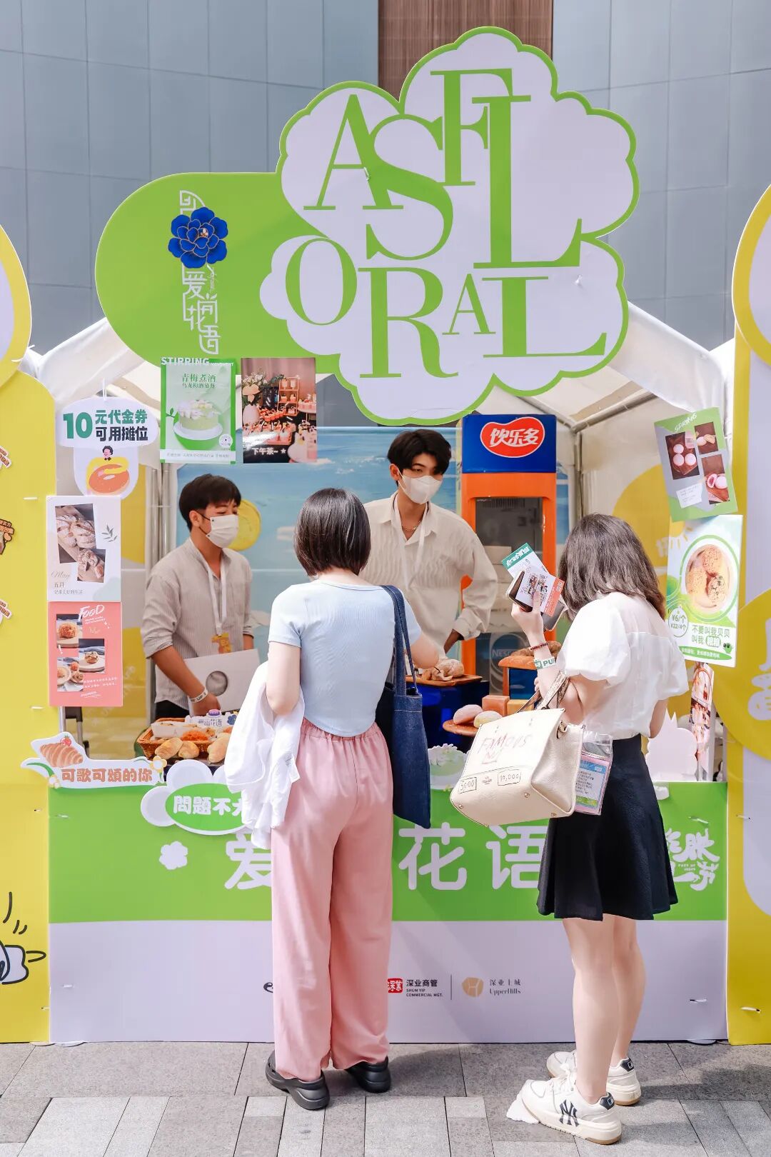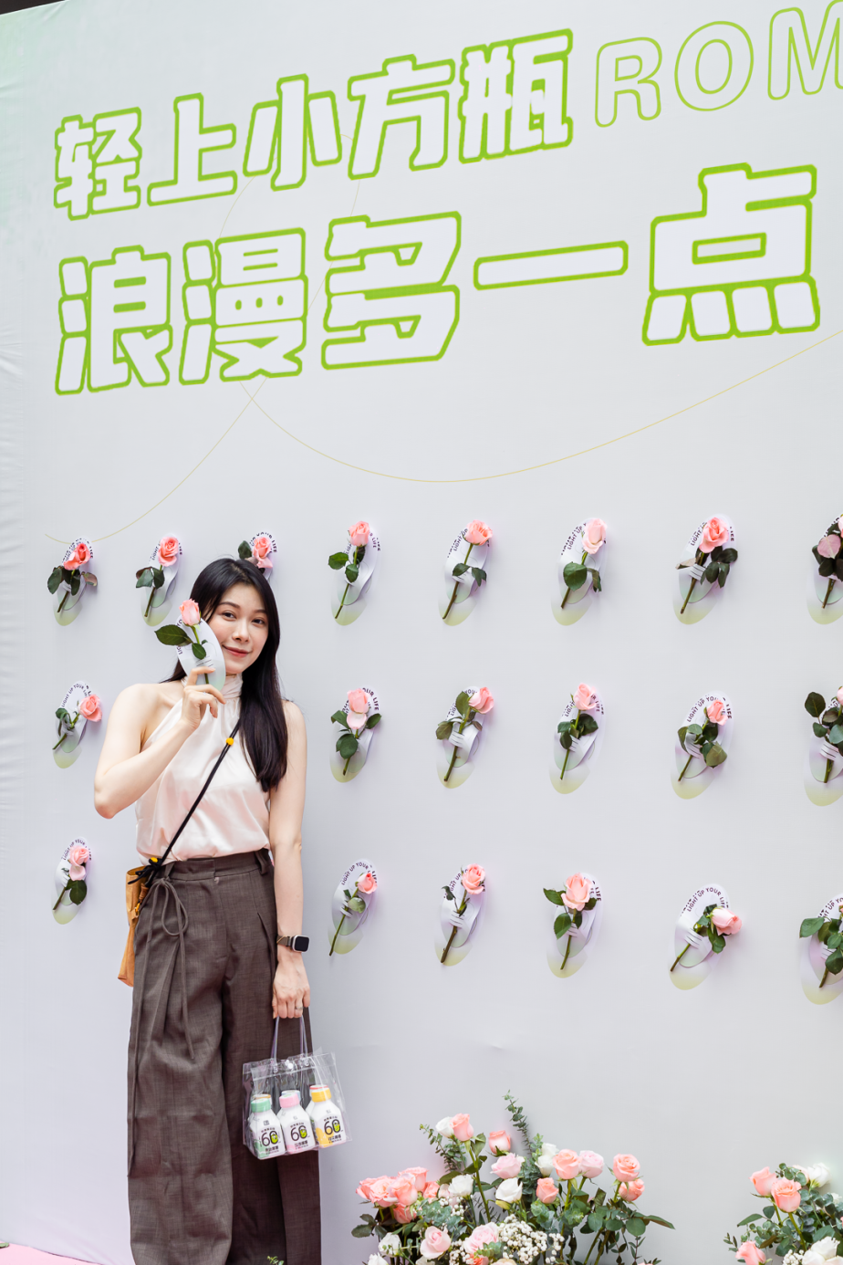 轻上把摊位布置成了春日小方瓶花园,喝着玫瑰椰椰在玫瑰丛中拍照,超有少女心。