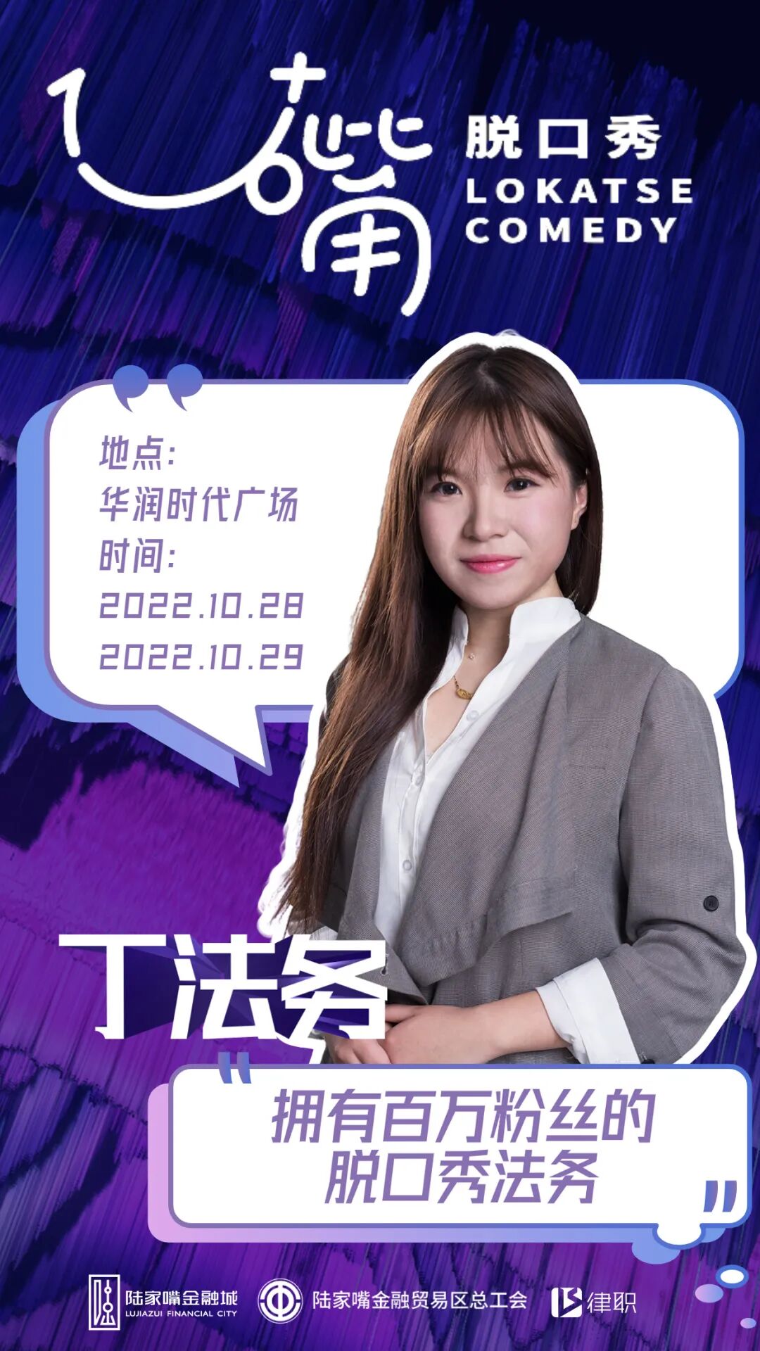 我们在年轻人喜闻乐见的脱口秀形式中融合陆家嘴特色,链接呈现法律人风采,分享职场趣事和成长心得,在笑声中传递行业菁英的蓬勃能量。