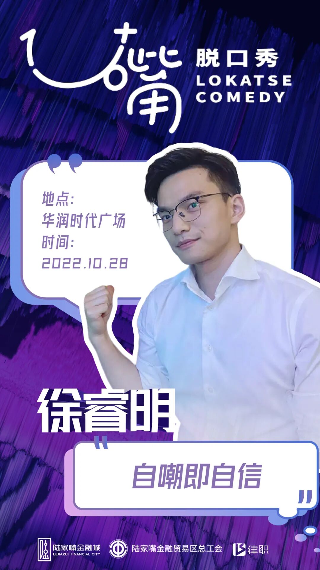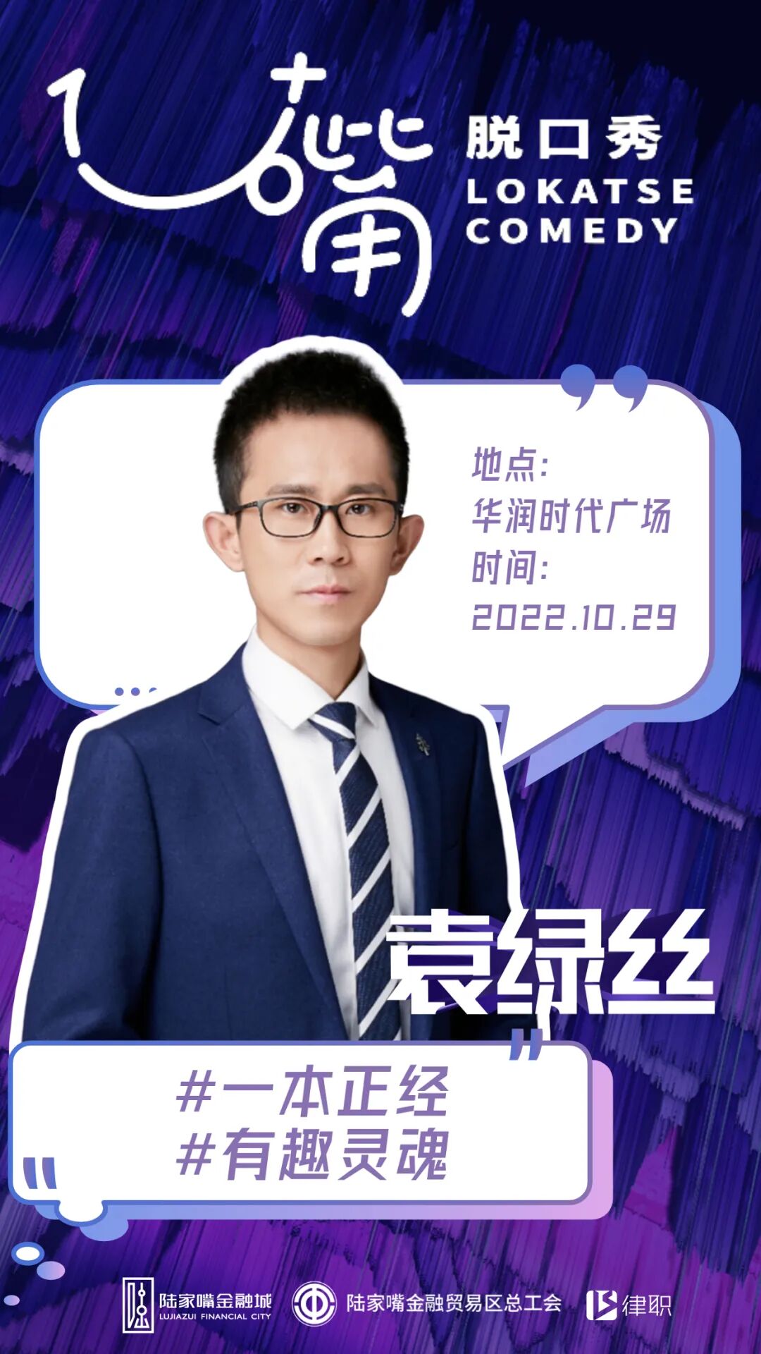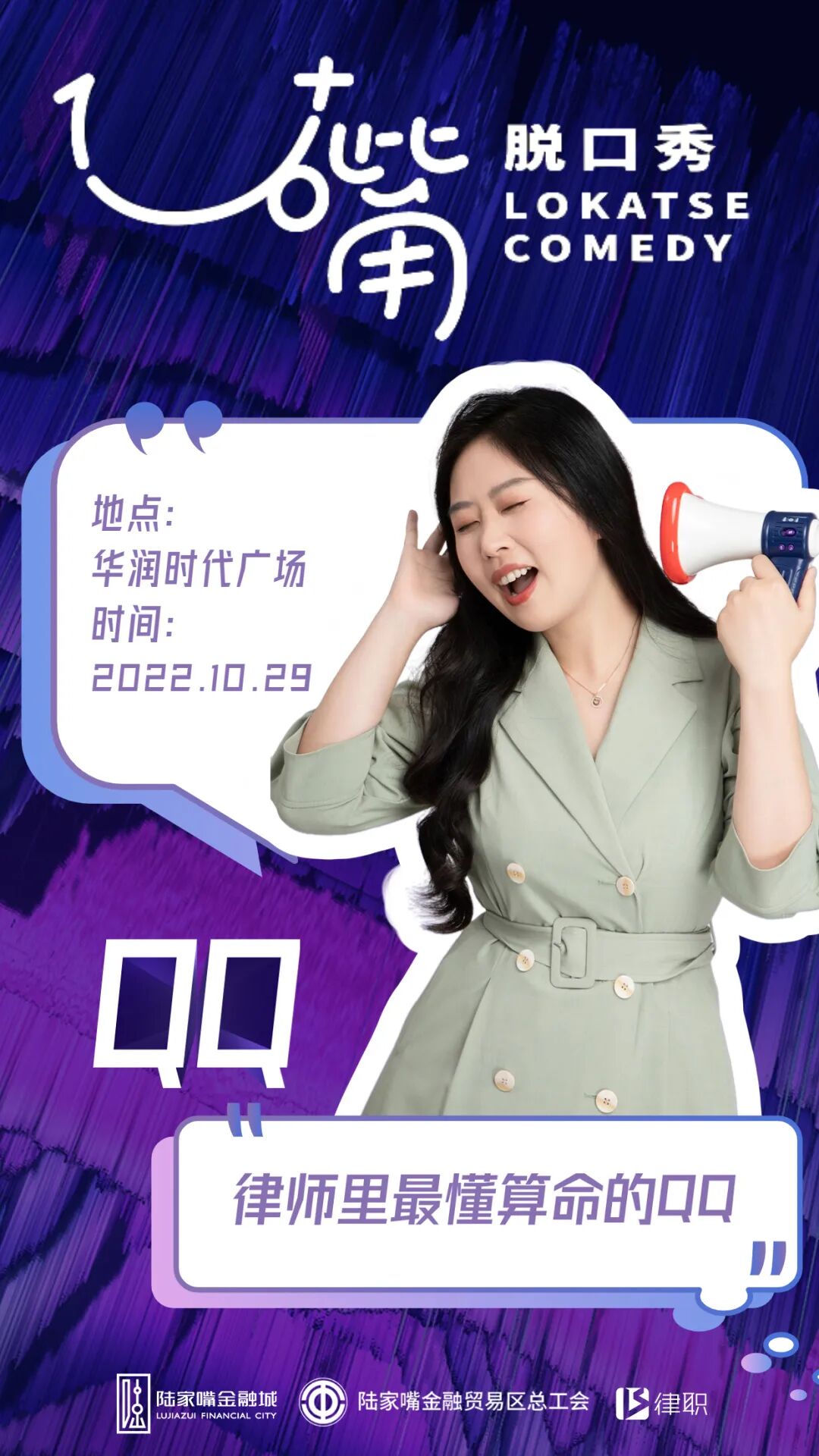 去年,浦东第一个本土脱口秀厂牌“1U+嘴”已在金融城落地开花。这次陆家嘴又带来了“新玩法”:第一场行业主题——法律人脱口秀即将登场!