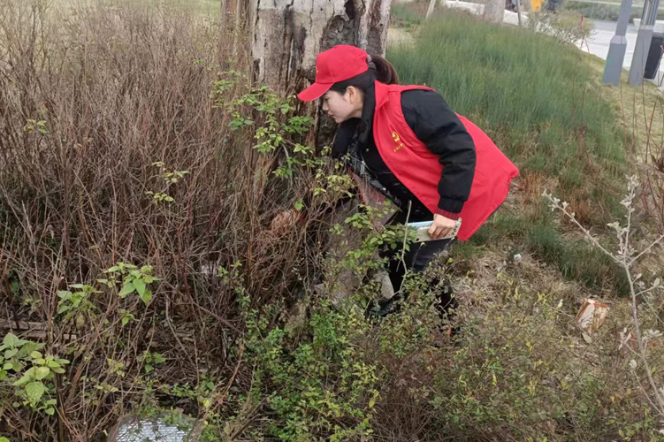 △东安湖社区党员志愿者捡拾草丛垃圾