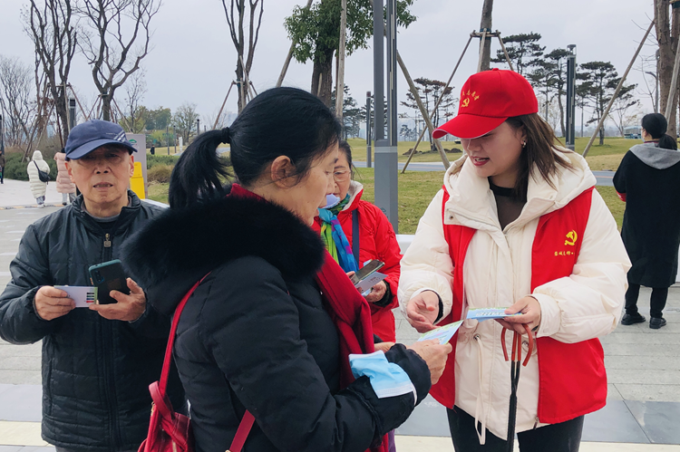 △东安湖社区党员志愿者在东安湖公园开展创城宣传