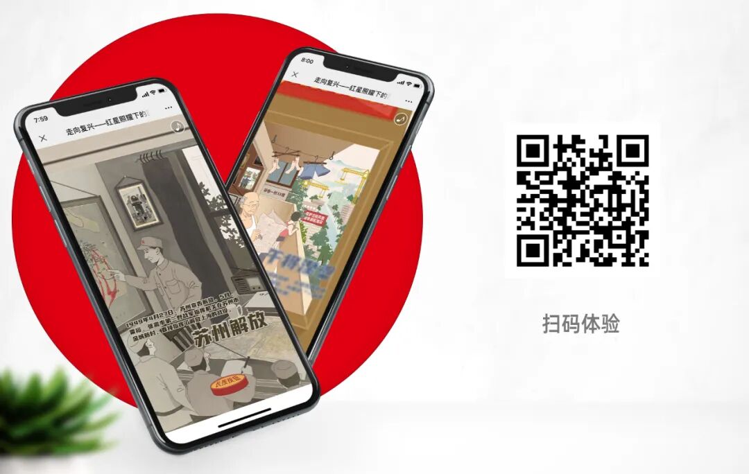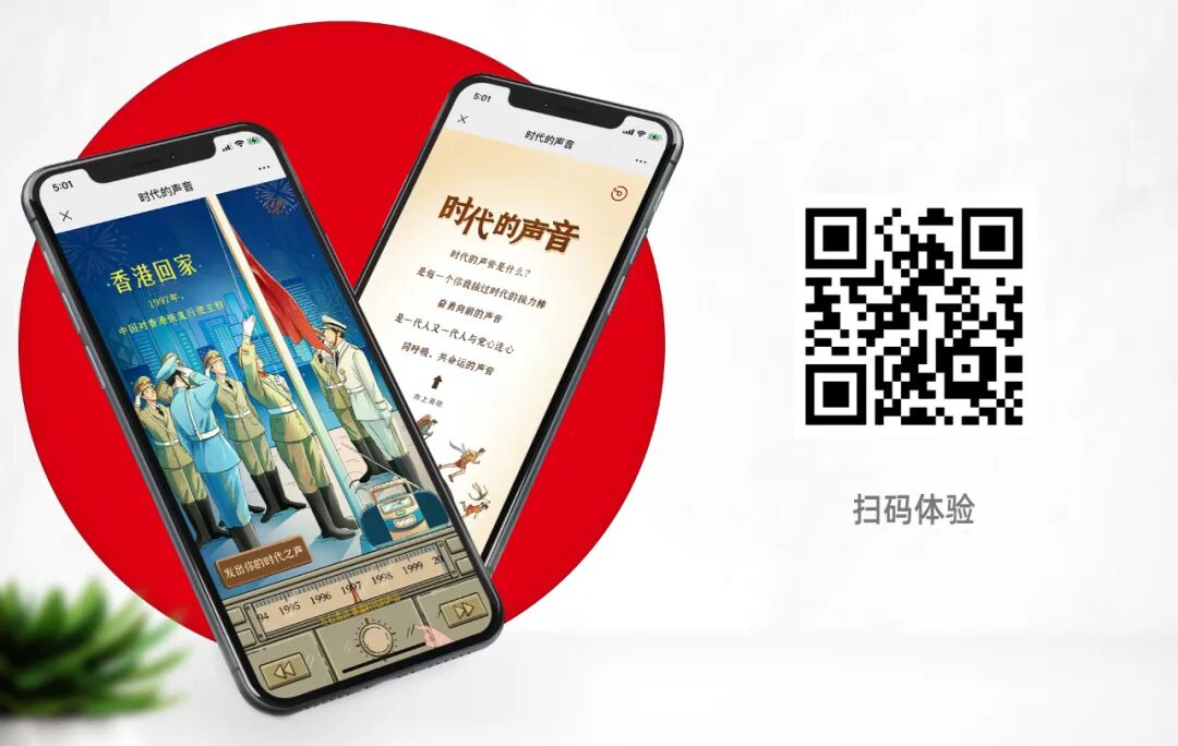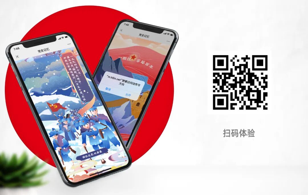 新京报以“一颗红星穿越百年”为线索,在这份 H5 作品中融合了多种交互技术,也是较少数应用陀螺仪判定的作品。滑动、连按、长按等操作层出不穷,形式体验相当丰富。