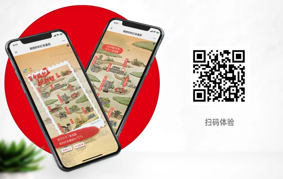 不得不说,党政融媒体工作中漫画应用越来越广泛。这一份来自山西的 H5 作品则通过打卡的方式,配合锚点动画,让本身静态的地图插画具备了一定的动画能力,且以“红色基因比例”的话术引导用户不断增加停留时间。