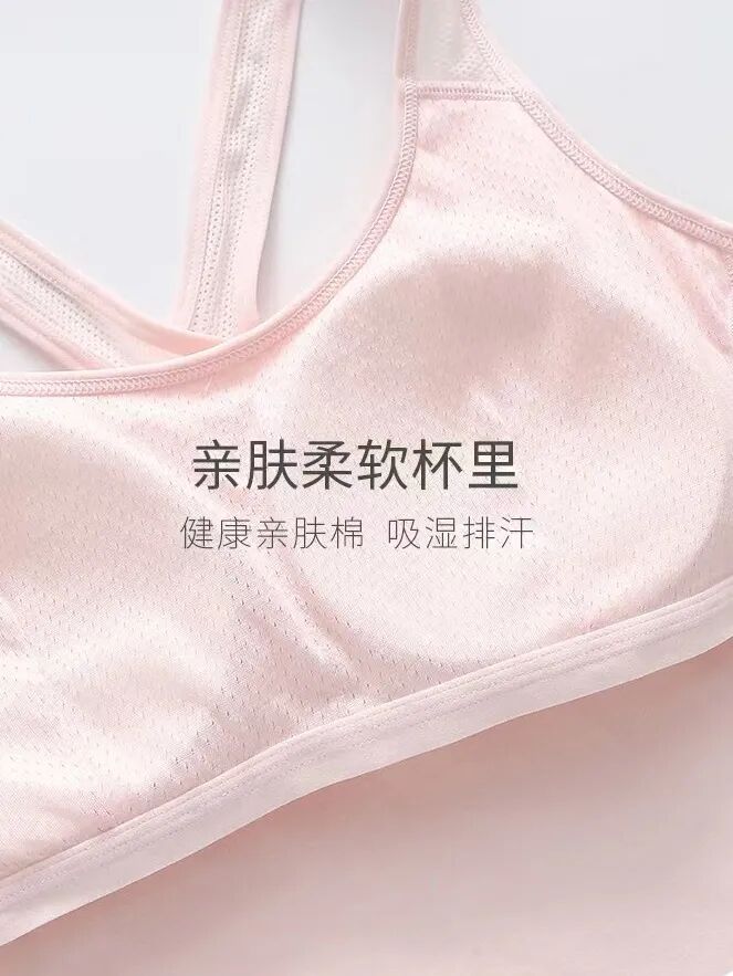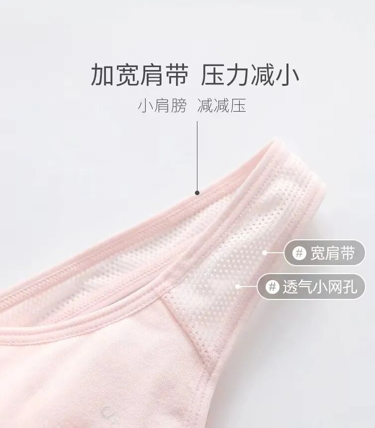 市面上有的肩带不符合人体工学原理做的不科学,或者内衣老化肩带变松,确实会让肩带总掉落,偶尔看到女孩把手举起来活动也是常有之事,因此交叉宽肩带是更好的选择。稳定不滑肩,做事不分心。考虑到正处在持续发育阶段,适当的成长空间,暂时不需要像成人内衣那样展现优美的胸型,在细节处选择加宽弹力下围,穿着不勒肤。有助减缓发育期焦虑,不含胸驼背,让周围的人注意到自己的身体变化。就算遇到变化也要学会正视,拥抱它,永远热爱自己的身体与心灵,永远爱自己。