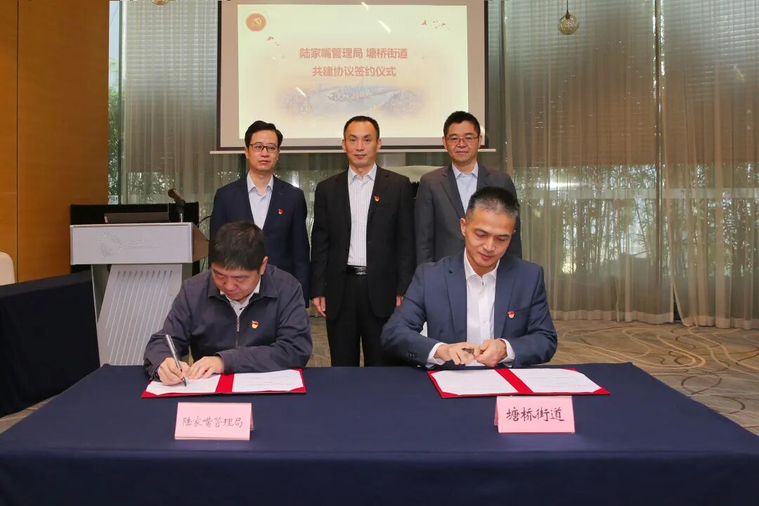 随后,陆家嘴管理局党组成员、副局长梁庆,塘桥街道党工委副书记、办事处主任郑耀抚签署共建协议。塘桥街道党工委书记费维照,陆家嘴管理局党组书记、局长肖健,区委组织部组织二处处长陈其良见证签约。