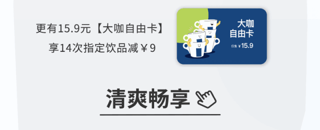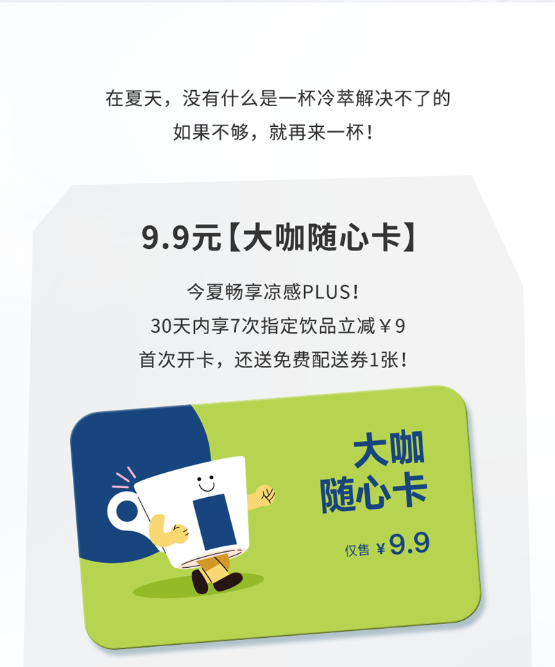 用户凭【 Lavazza大咖随心卡(30天) 】前往门店柜台点餐或LAVAZZA小程序到店自取点餐,以菜单单品价点购指定饮品,可享立减9元优惠。有效期内可享7次。用户凭【 Lavazza大咖自由卡(30天) 】前往门店柜台点餐或LAVAZZA小程序到店自取点餐,以菜单单品价点购指定饮品,可享立减9元优惠。有效期内可享14次。指定饮品可选:美式咖啡、鲜奶拿铁、燕麦拿铁、浓郁拿铁、路易波士茶拿铁以及当季新品:冷萃咖啡、双柚茉莉冷萃、水牛乳清甜拿铁等(当季新品随上下市等原因可能会有调整)。付费会员服务开通后,权益及优惠仅限本人使用,不可转赠,不可退换,不可以兑换现金。LAVAZZA付费会员服务费用将在您点击购买之日通过您绑定的微信账户进行支付。一旦您成功开通付费会员,LAVAZZA并不会因您中途主动取消服务或终止资格而退还费用。LAVAZZA付费会员权益的开通以您同意《LAVAZZA付费会员服务协议》为前提,请您在购买之前仔细阅读。