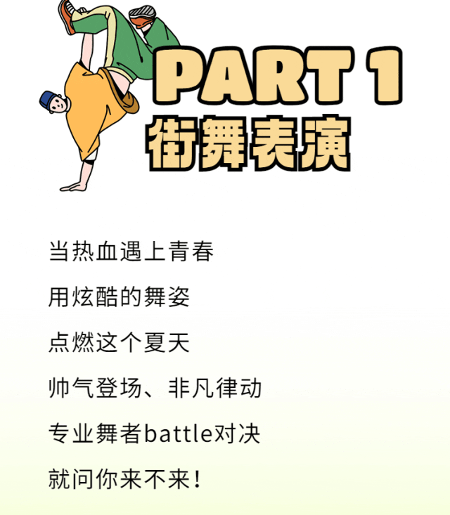 泉州暑期活动有哪些?福建活动,潮玩活动,青年,年轻人有哪些地点可以玩,嗨皮一夏,街舞表演,说唱表演,街头涂鸦快闪,创意定制T恤,茶食供应,和我们一起“FUN”肆嗨,福建暑期旅游推荐地,大学生特种兵旅游,泉州惠安city walk,泉州露营地,惠安草地露营,福建露营,潮人集结,活动抽奖,文创,打卡音乐舞蹈美食。泉州暑期活动有哪些?收下这份《青创潮玩计划》,嗨皮一夏!“潮动后窑 FUN肆嗨” 青创潮玩计划 7月21日 18:30 后窑青年创业街区 野不错青年露营社区 街舞表演 说唱表演 街头涂鸦快闪 创意定制T恤 茶食供应 潮玩指南解码中 Trendy Play Guide Part1 街舞表演 当热血遇上青春 用炫酷的舞姿 点燃这个夏天 帅气登场、非凡律动 专业舞者battle对决 就问你来不来!Part2 说唱表演 邀请泉州CARP MUSIC厂牌 B.S.K强势助阵 带来激情和活力的演出 在夏夜感受音乐的狂欢 尽情释放自己,一起潮嗨~ Part3 街头涂鸦快闪 色彩丰富的涂鸦艺术 夸张鲜明的态度表达 可谓是潮流文化的点睛之笔 也是出片率极高的打卡圣地 现场设置长达4米的空白幕布 特邀嘉宾自由创作主题墙绘 让我们拭目以待吧!Part4 创意定制T恤 为现场观众准备T恤10件 和我们一同开启 脑洞大开的创意之旅 展现艺术灵感与手绘的共同演绎 (名额有限,先到先得,参与者可在活动结束后将绘制T恤免费带走) 未能到场的小伙伴也别急 扫描上方二维码参与抽奖 有机会获得本次活动 “潮动后窑 FUN肆嗨”主题T恤1件 一共10个名额,不来试试吗?Part5 茶食供应 到场来宾皆可免费品尝 由野不错青年露营社区提供的 茶饮、糕点和水果 名额有限,快来报名吧~ 报名成功者可凭手机短信 到现场参与精美伴手礼抽奖~ (收到报名短信即视为报名成功) 街舞、说唱、涂鸦、文创、露营 多种创意玩法一处GET 这个夏夜来后窑 和我们一起“FUN”肆嗨