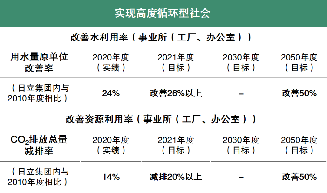 “日立环境革新2050”从可持续发展的角度出发,以“脱碳社会”“高度循环型社会”“自然共生的社会”为长期目标。其中,“高度循环型社会”的目标明确写出:与客户和社会共同构建水和资源循环型社会。为了更好地达成这一目标,我们正在加速行动。