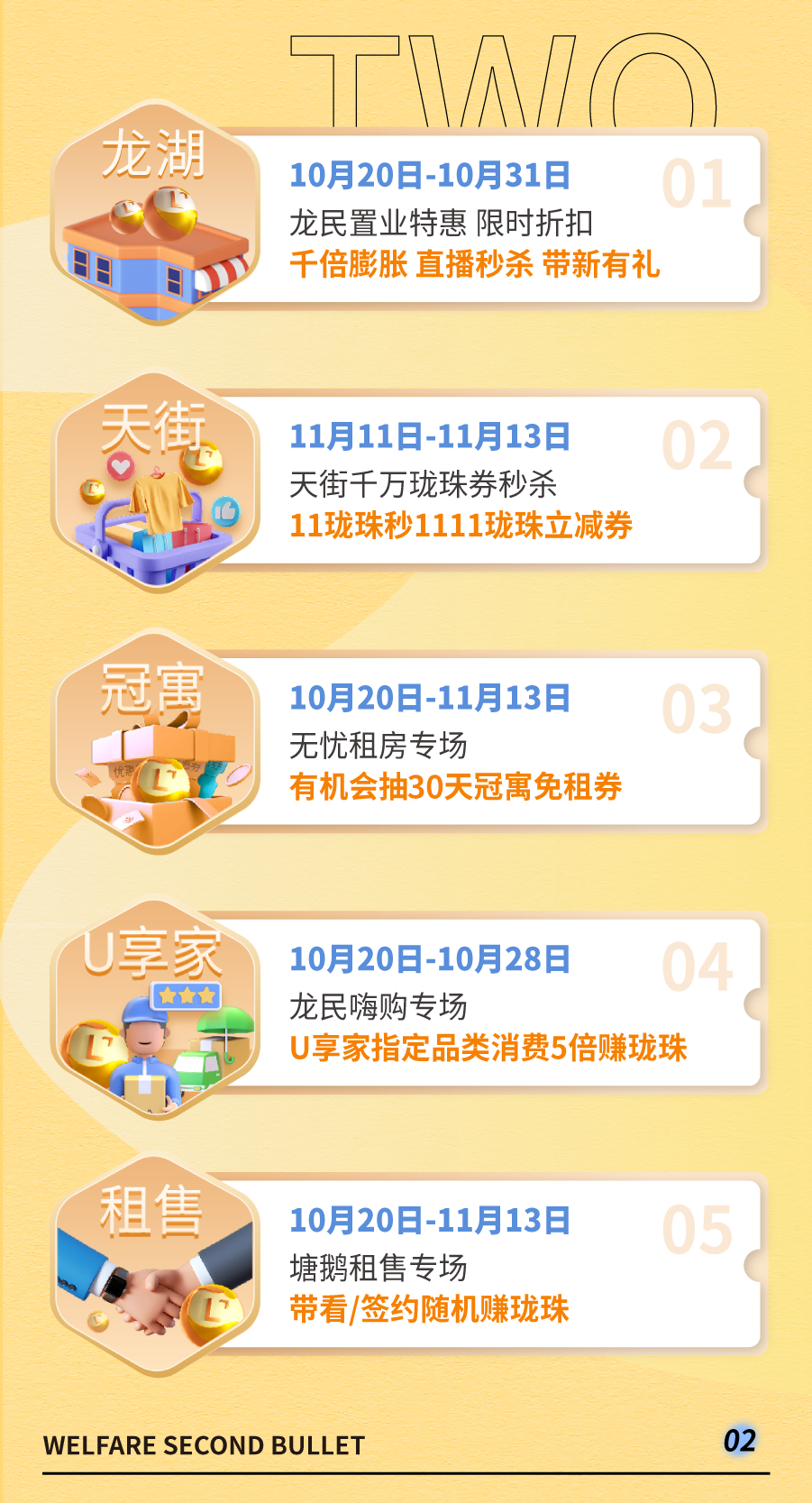 在龙湖买新房、逛天街、租冠寓、缴纳物业费和塘鹅租售服务费等,只要是在龙湖旗下场景中消费,均可享受一定数量的珑珠奖励,让你的每一笔消费都不白花。