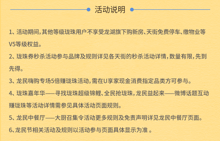 1.购龙湖新房可按房款1‰给予成长值,有效期10年,需与项目确认所购房源是否在“签约返珑珠”活动范围内。