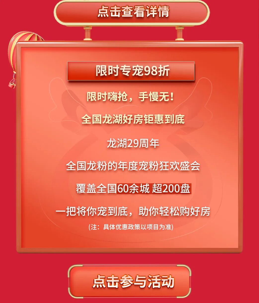 * 服务号中有关商品房的销售广告和宣传资料均为要约邀请,相关楼盘及活动信息仅供参考,买卖双方的权利义务以购房合同约定为准。本服务号展示的交通、商业、学校、医疗、娱乐、旅游等信息并非合同附件,不作为要约,不构成销售承诺,相关信息以政府部门审批核准内容为准。房源信息(包括但不限于价格、户型等)、优惠动态资讯等可能实时调整,具体信息详询线下售楼处,请及时关注信息更新,恕不另行通知。