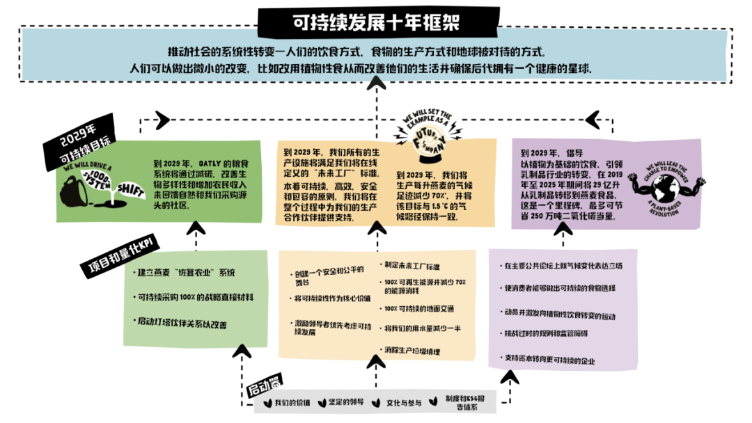 作为全球领先植物基食品品牌,OATLY可持续发展的三大支柱是:驱动食物系统转变,做未来公司榜样,引领植物基变革。