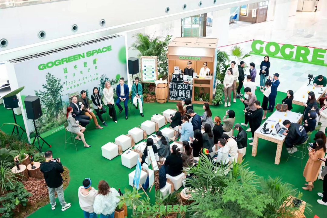 4月23日至5月16日,中信泰富广场携手可持续生活方式平台GOGREEN共同呈现“GOGREEN SPACE城中秘境”可持续限时空间。结合自然与城市特色,构建起一方以植物包裹的开放绿色空间,邀请市民在城市绿洲中环游。