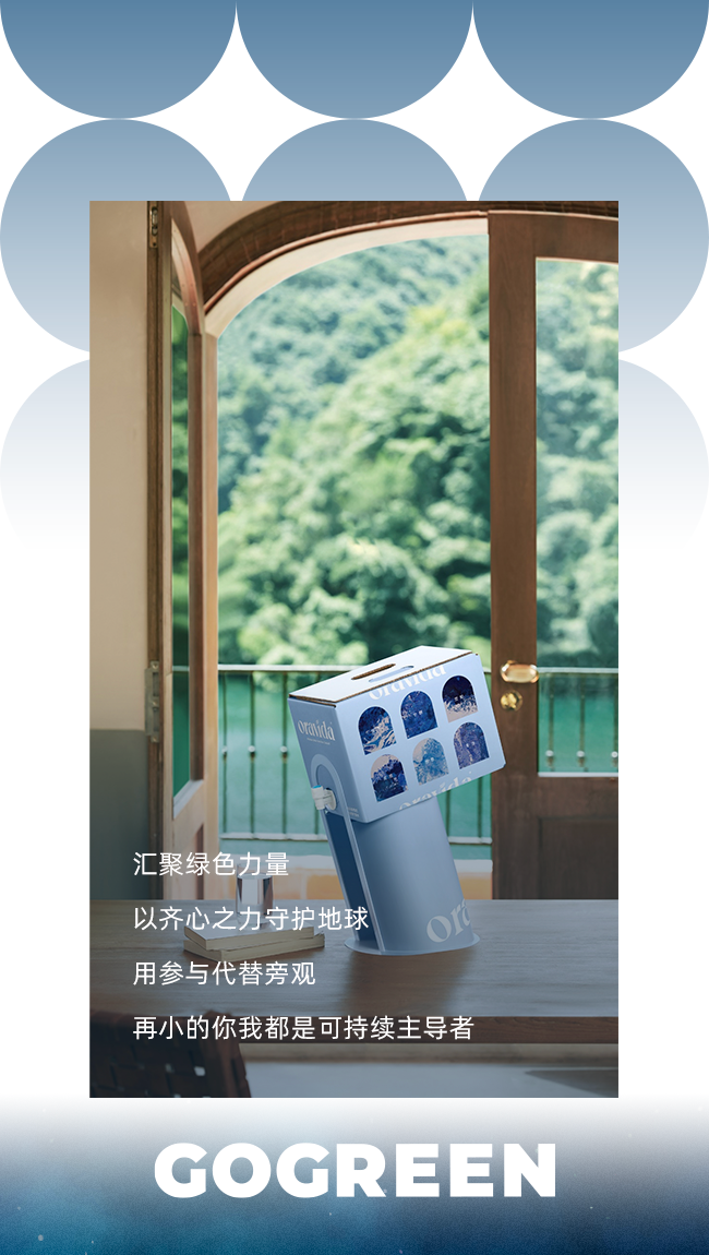即将举办【优】星宇宙艺术展,鼓励消费者寄回空瓶,联合艺术家们进行艺术再创作,践行环保行动。我们为咖啡杯设计的可循环使用可回收的咖啡杯套,将环保理念融入日常生活的细节中。