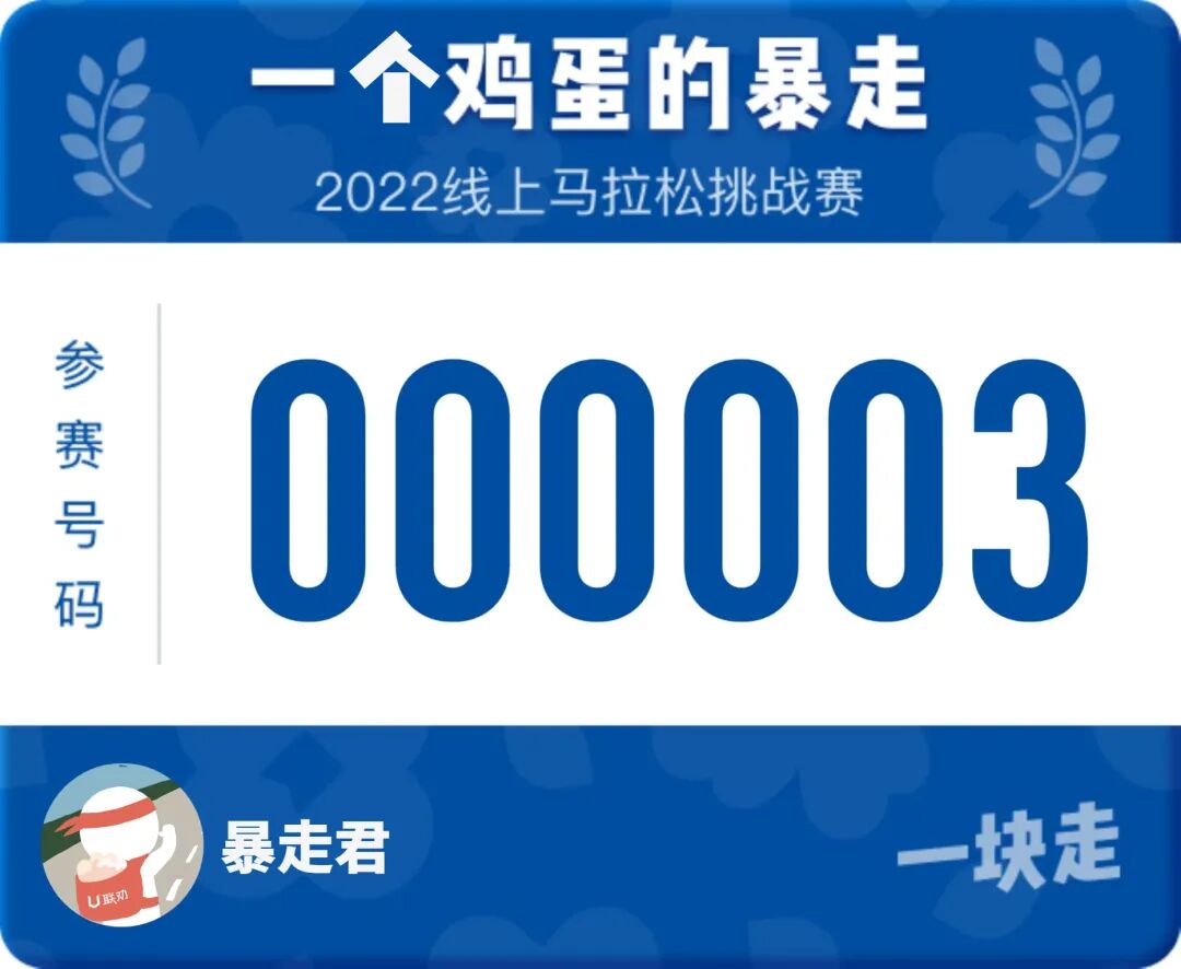 即日起至7月16日,点击一块走小程序,即可参加一个鸡蛋的暴走2022线上马拉松挑战赛。