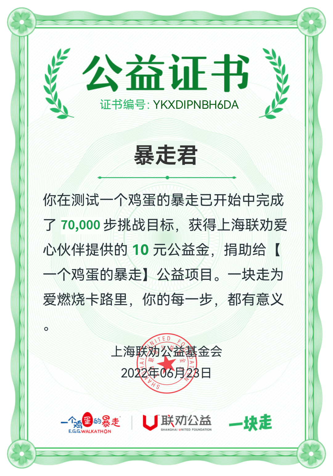 这个夏天,由腾讯公益联合上海联劝公益基金会,推出一个鸡蛋的暴走2022线上公益马拉松赛,不限场地和时间,7月6日-16日内授权微信运动,10天挑战50KM,捐步得10元公益金帮助困境儿童。