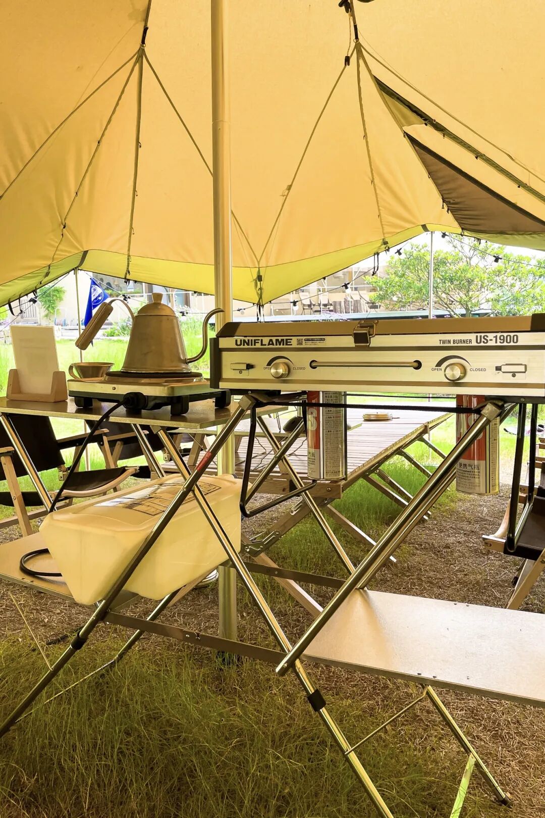 时下大火的露营,在这里也能体验。酒店有自己的沙丘帐篷,帐篷和两个巨大天幕构成了一个开放式空间。