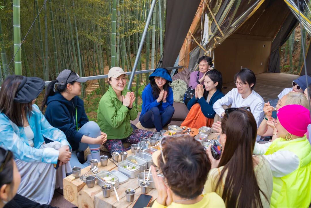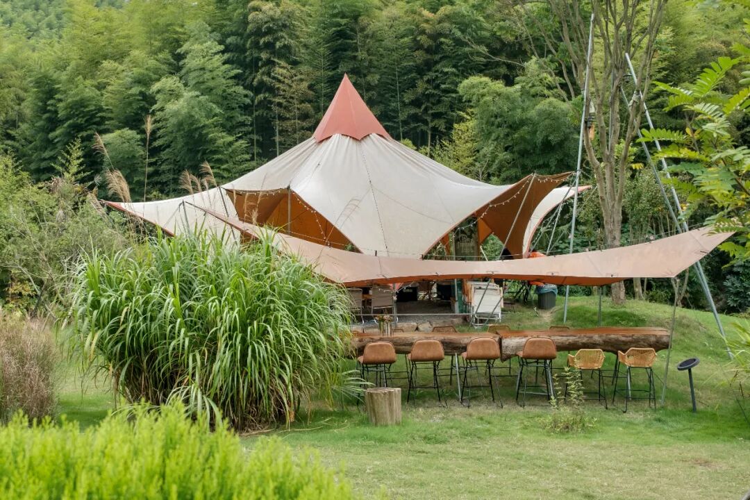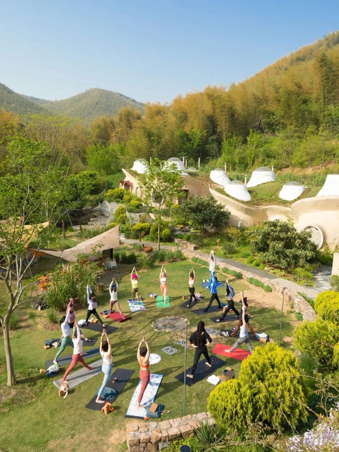 野界在庆典草坪上搭建了一个野界自行设计的INTENT天幕和甲虫炉,并将这里作为露天晚餐的就餐区。头顶着浩瀚的星空,周围是浪漫的花园,而眼前是大厨主理的法式烤肉大餐,上桌还滋滋响着流着汁水的鲜嫩牛排、色彩丰富的烤时蔬。有酒有肉有好友,在这里用餐是人生的一大乐事!宵夜时分,主厨会用酒店独一无二的甲虫炉现场烤制柴火披萨,记得早点到别错过了。 野界的下午茶Menu会随着时令,或者花园里植物的生长状况来定,再由餐厅新鲜手作。你可以在餐厅里、在天幕下,在树屋上,甚至你可以打包成野餐篮,再从客房的小冰箱里捎上几瓶饮料,在花园里铺开野餐布,任何场景都可以是你下午茶开始的地方,有着无拘束的自由感。野界因地制宜打造了一系列丰富的体验活动,清晨、午后、黄昏、夜晚,总有一刻都有风景相伴,用脚步丈量这片秘境,完成身心的蜕变之旅。清晨在鸟鸣中醒来,可以在酒店来一场唤醒瑜伽。伴随着充沛的阳光、新鲜植物的芳香,从自然中汲取能量,唤醒身体活力。野界位于莫干山北麓山脉,这里遗留有茶圣陆羽的一条采茶古道。在领队带领之下,可以来一场久违的森林徒步。根据难度系数的不同,有野界散步线、登山线、水库线冲顶线3条线路可选。野界在山顶搭有一个快闪咖啡营地,你可以在这里享用一杯特调咖啡,欣赏眼前“一览众山小”的景致。![]()