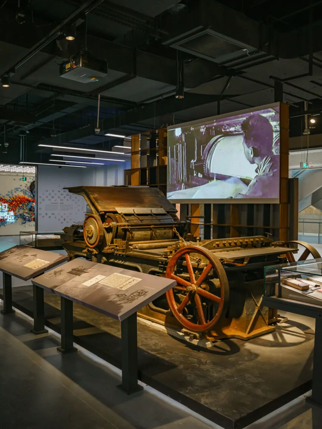 随后,最让人印象深刻的就是潜艇内部的游览过程,军事迷绝对会喜欢。当天同我们一起参观的,恰好是一批海军退役潜艇官兵,甚至有该潜艇当年的设计人员。白发苍苍的他们穿着海军纪念衫,自发为我们这样的年轻人充当起了潜艇讲解员,一起在潜艇内部逼仄的空间、密布的仪器管路间爬上爬下,手脚并用地穿行。“我在这个站位工作过呢,”老爷爷一边抚摸机械,一边让同伴为他拍照。这仅容一人转身的工作台,狭窄到不足半米宽的床铺,几乎就是潜艇兵长达数周甚至数月的航行中的全部空间。在潜艇的密闭空间内,各种资源都非常有限,再加上艇内动辄40度的持续高温和噪音,当年潜艇官兵的生活之艰苦可见一斑。在看到潜艇的厨房时,另一位爷爷则打趣说,“瞧我脸上这个疤,就是当年在这儿开门的时候不小心打到的。”眼前的前海军战士与潜艇的实战舱室,无不让人动容,共同构成了这场让人难忘的潜艇之旅。购买120元的联票,还能登上“远望1号”航天测量功勋船——它诞生于江南造船厂,退役后又回到了这里。涛涛浦江边停泊的两艘巨舰与江南造船厂旧址,共同见证了中国航海、航天、军事工业的发展,也是上海这座城市的工业岸线的绝佳体现。参观预约:“上海潜艇展览馆”公众号预约,参观潜艇门票80元中国近现代新闻出版博物馆,上海又一家重磅新博物馆,预计6月正式对外开放,我们抢先探访,这就为你带来一手情报。光听名字,你会感觉这是一家非常专业的博物馆,不过我们实际逛下来,场馆采用了很多元的手段来展示新闻出版的历史文化,与每个人的生活都息息相关,简直可以说是“老少皆宜”的好逛博物馆,预判它会是下一个杨浦的文化地标。进门是整个场馆的序厅。2021年上海辞书出版社将中华书局图书馆旧藏移交博物馆保管,并原貌还原在了参观者眼前,历史的厚重感扑面而来。
