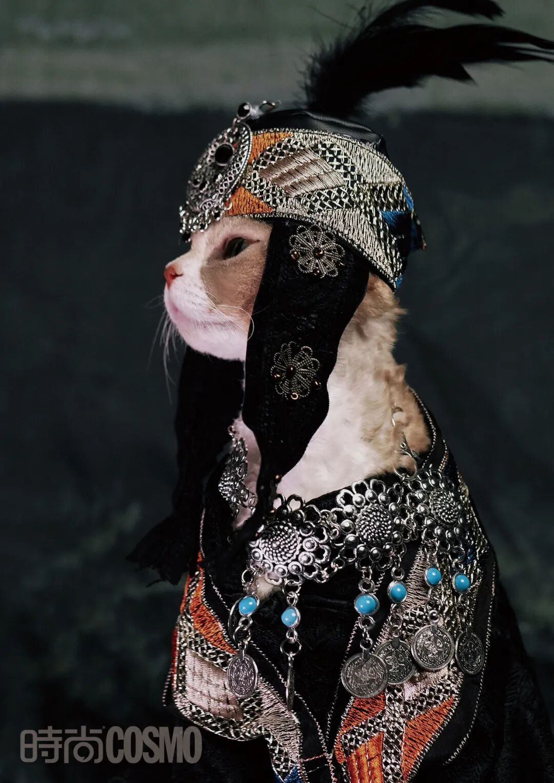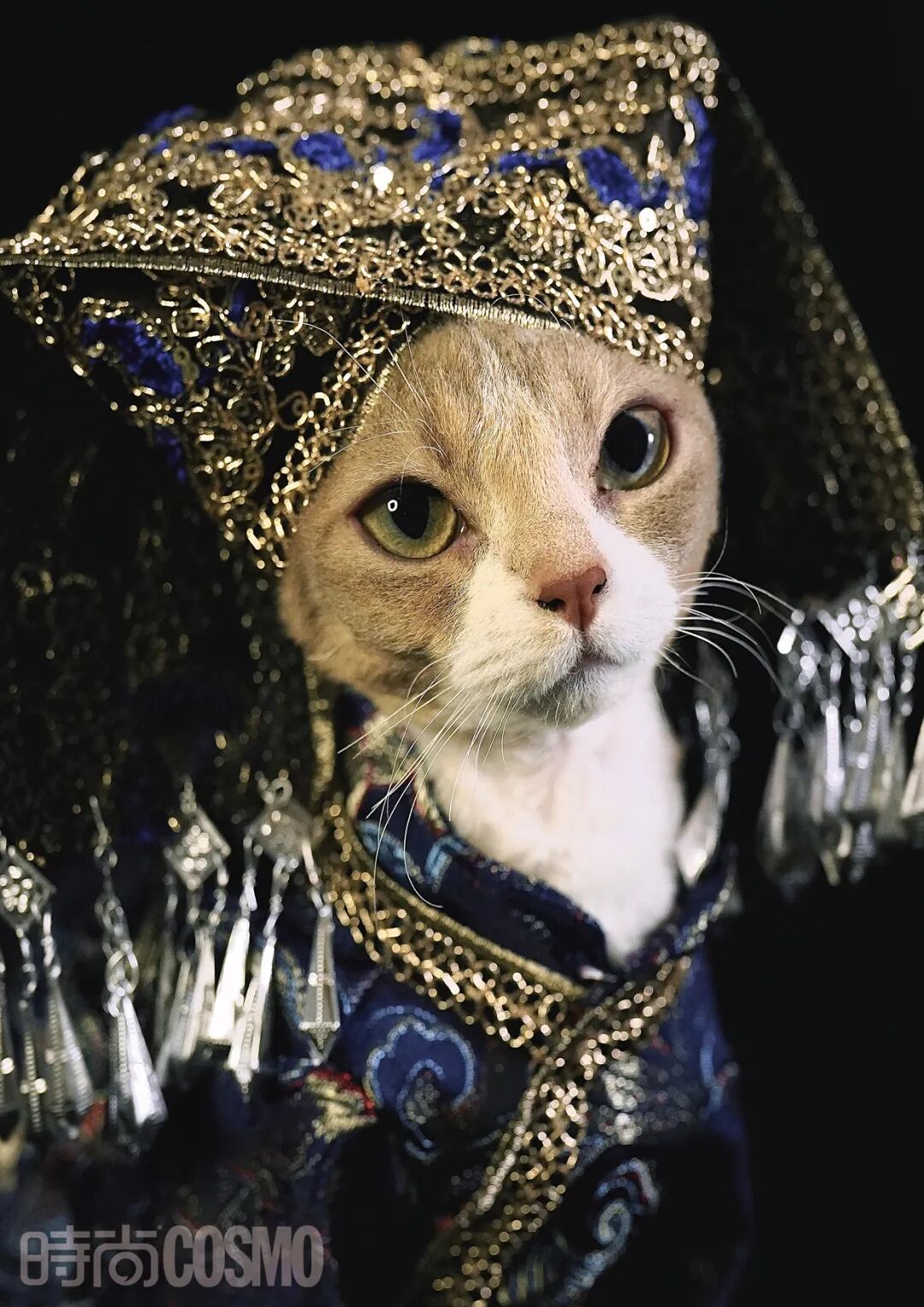 在小红书@猫模千姐儿的主页上,一只德文猫穿着华贵,饶有气质地展示着身上的精致服装。这只叫作“千姐儿”的猫是Cashe现在所养的6只猫中最乖的一只,于是,日常需要模特完成的活便会交与它来完成。不同于各个平台铺天盖地展示着的或时尚,或休闲,又或是可爱风格的宠物服饰,Cashe正在做的事有点特别——为宠物设计一系列精美的带有地方特色的服装,其中当以少数民族服饰尤为吸睛——毕竟,我们着实太少看到宠物也能将国风“玩转”得如此到位。