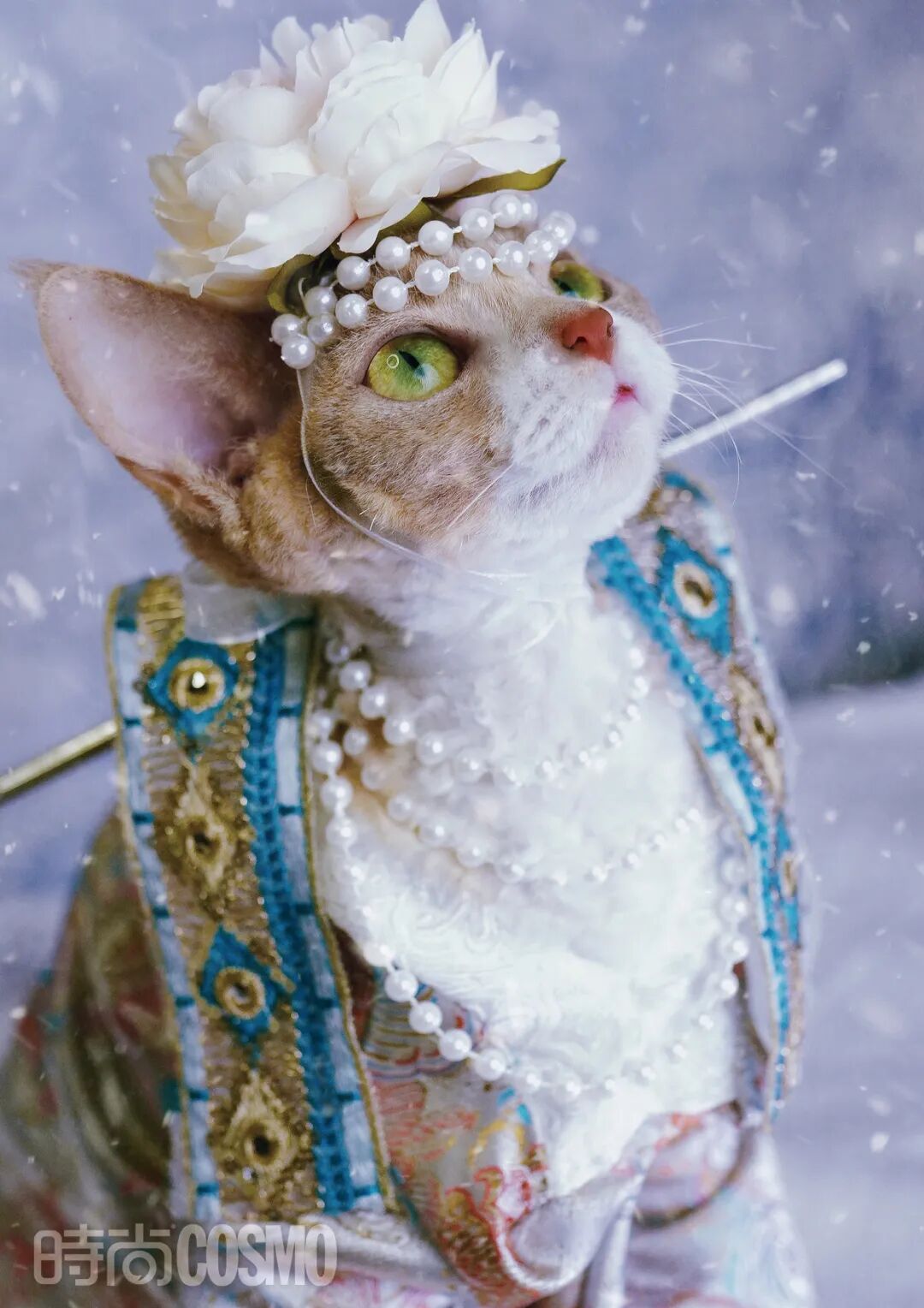 因为在中国戏曲学院学习人物造型设计出身的缘故,同国风相关的元素自然而然成为Cashe的优选,这也就解释了为什么我们总能在千姐儿的演绎中看到不少制作考究的民族服装。成品固然精美,前期准备过程中更需要功夫。制作一套宠物国风服饰之前,她会花4 ~7天的时间去做前期调研,待细节都妥善确定后,再花15~30小时去手工制作。上手制作起来可不是什么简单的事,宠物的体形不同于人,另外还得考虑到制作得再精细些,它们穿着佩戴才不会难受。