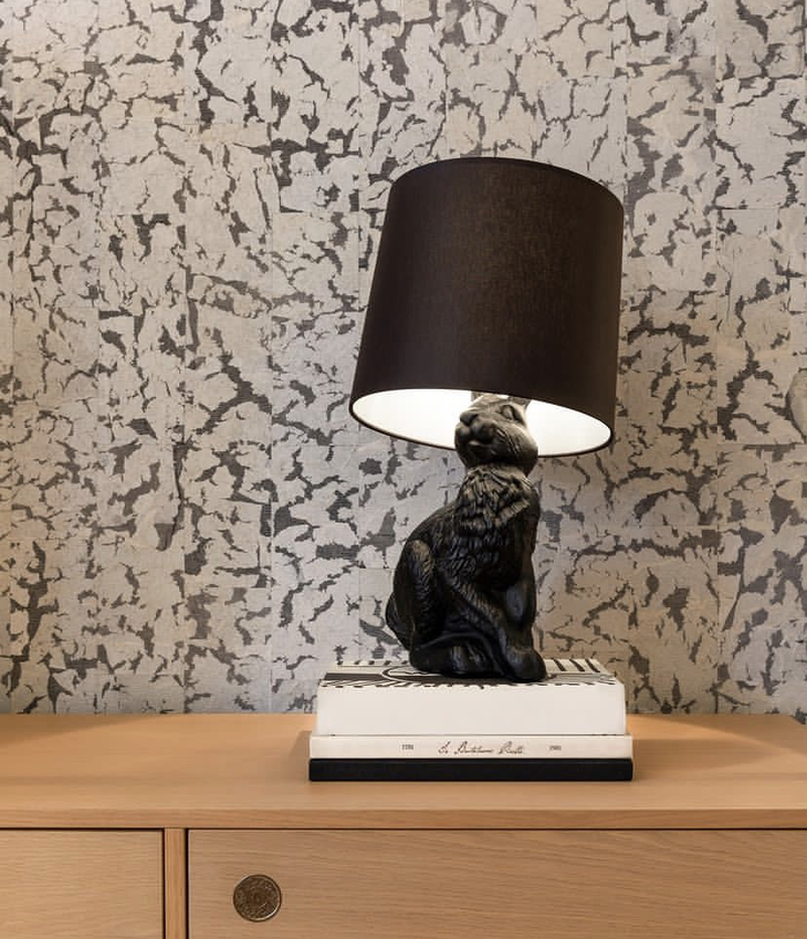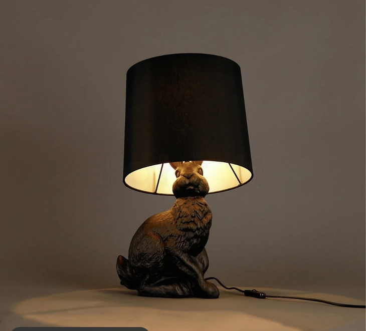 头顶灯罩的小兔安静地蹲守在一方天地中,惟妙惟肖的小表情逼真地仿佛请来了一只真兔子,细微的毛发也是清晰可见,做工十分精细。这撩动人心的童趣让人感觉到这是一只刚刚从童话世界跑的兔子先生。