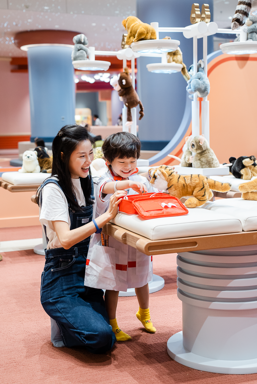 快乐的打卡区域数不胜数,能让宝贝体验cosplay乐趣的宠物医院,或是亲子互动十足的mini厨房和超市......