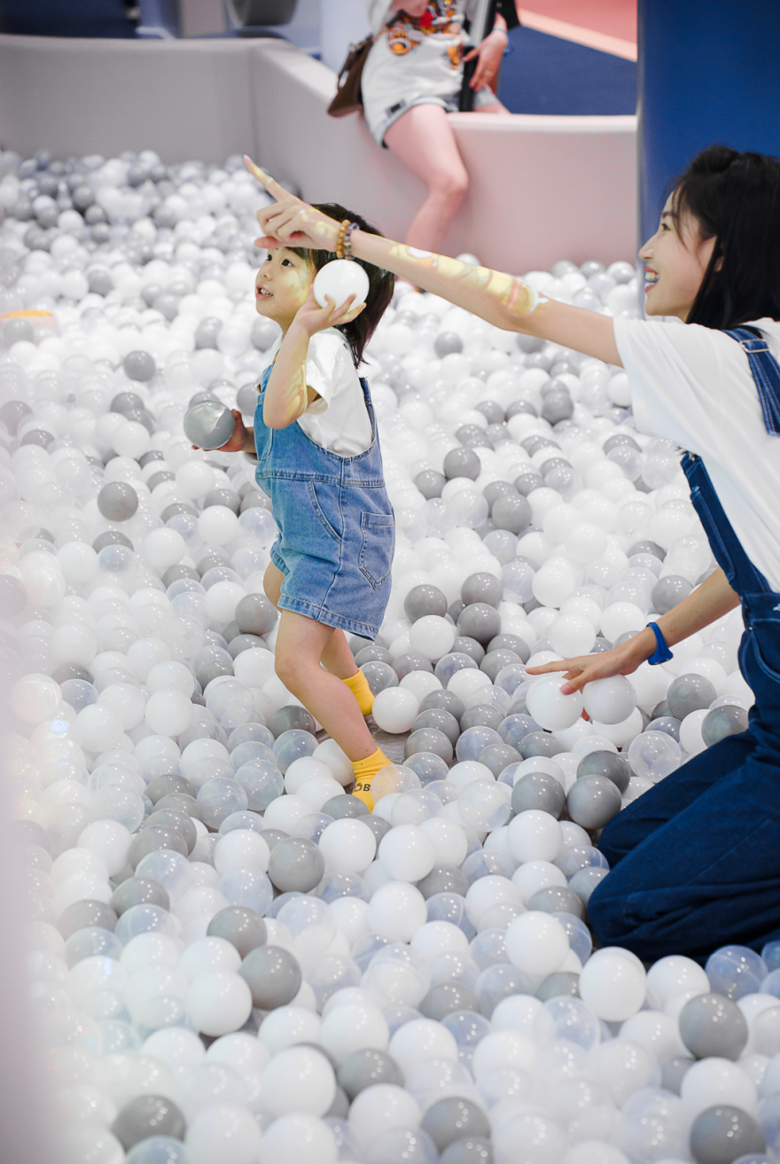 用硅胶球填满的海洋球区,是小朋友玩耍、奔跑的天地,更让大人一秒重回小时候,沉浸在海洋球池的玩乐时光。