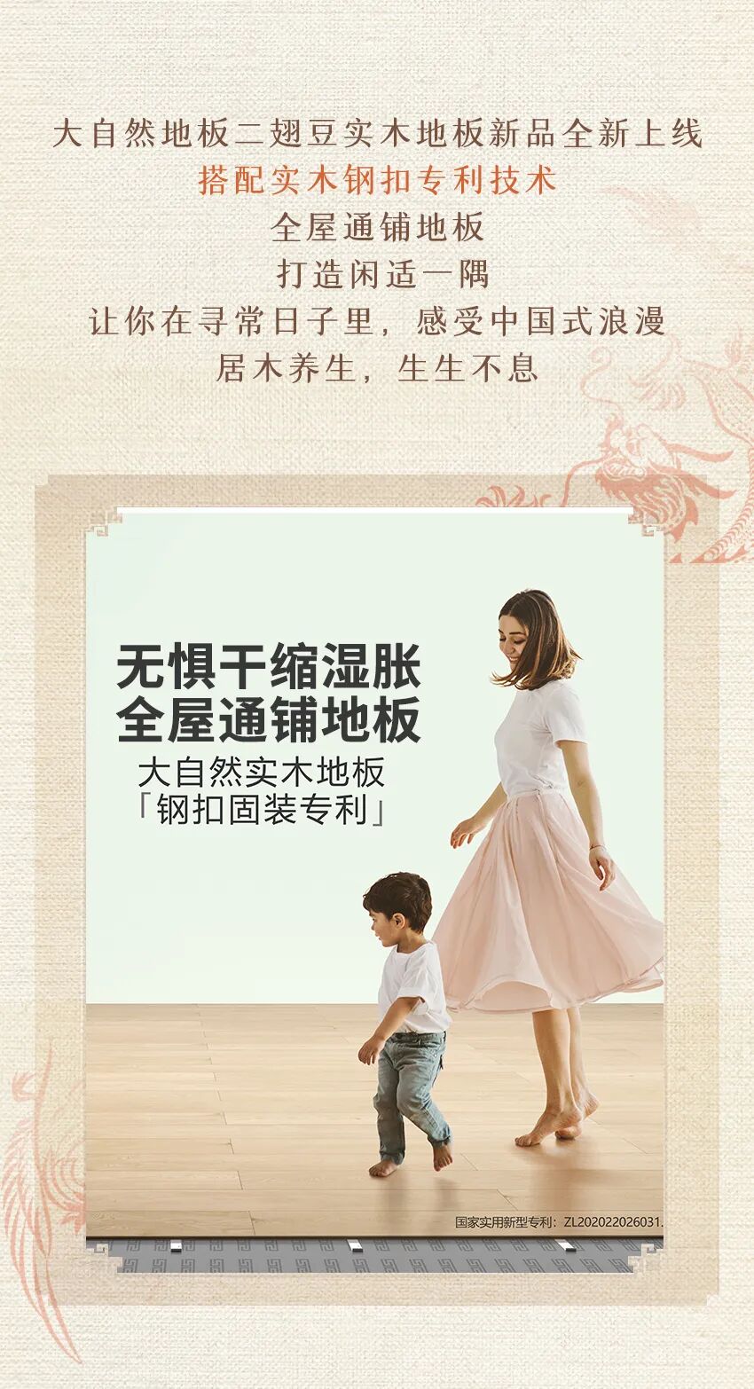 此外,大自然地板还研发出获得国家专利的“钢扣固装方案”,以特制合金钢扣提供锁力连接地板,再通过测算各地环境变化数据,匹配以合适的安装方案,有效解决地板容易变形和膨胀收缩的问题。