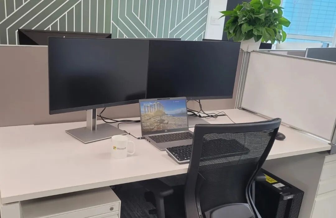 然后是自己的工位,微软办公区的工位还是非常宽敞的,每位员工都会拥有一台主机、两台显示器和一台笔记本用于工作。据传闻,上图中的椅子价值700美元一把,出处无从考证。
