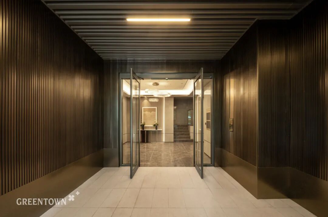 为提升业主入住后的仪式感,项目从多方面进行品质提升。地下车库汽车坡道格栅吊顶及星空顶,提升车行归家仪式;单元门厅外部采用不锈钢格栅饰面,尽显入户格调;奇妙空间、睦邻空间等主题架空层,丰富了未来生活场景。