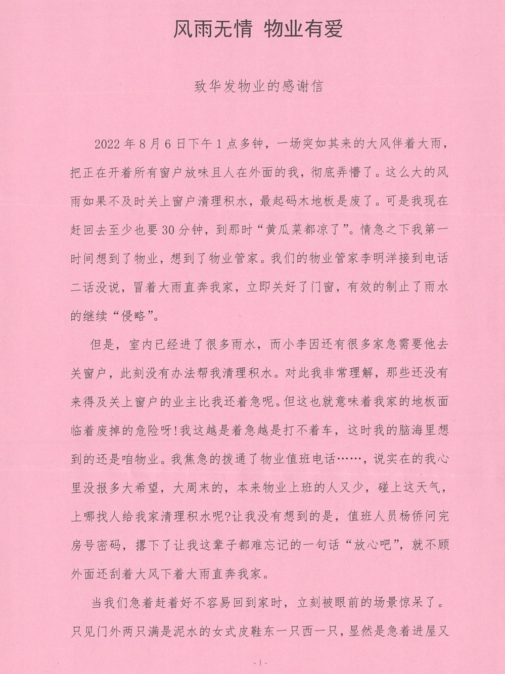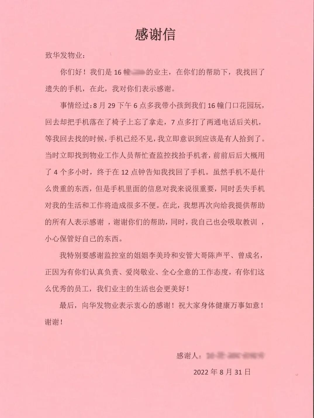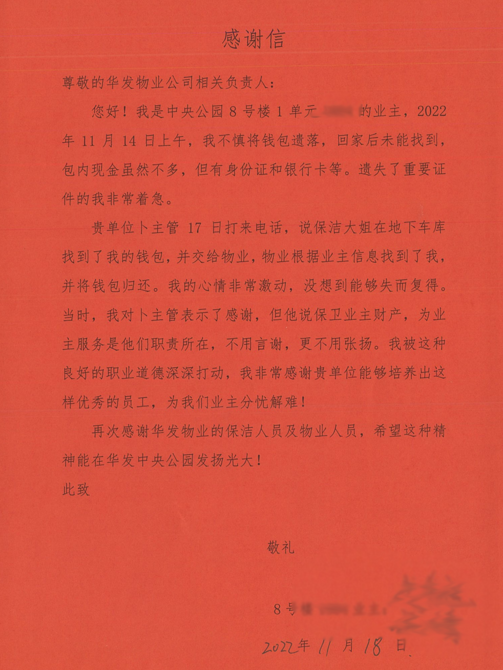 收获着属于物业人的感动与期许