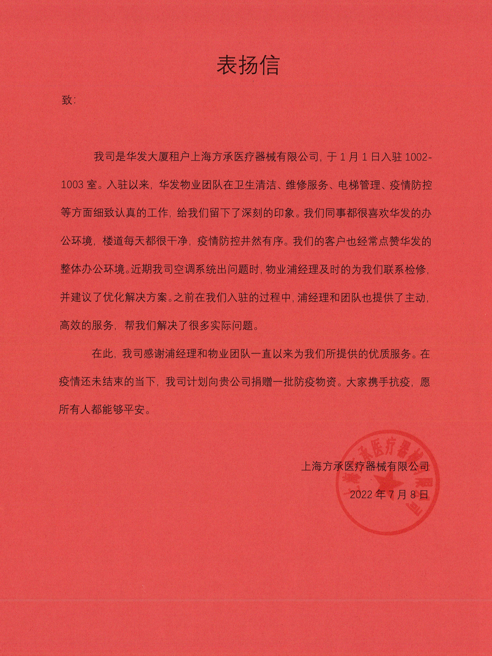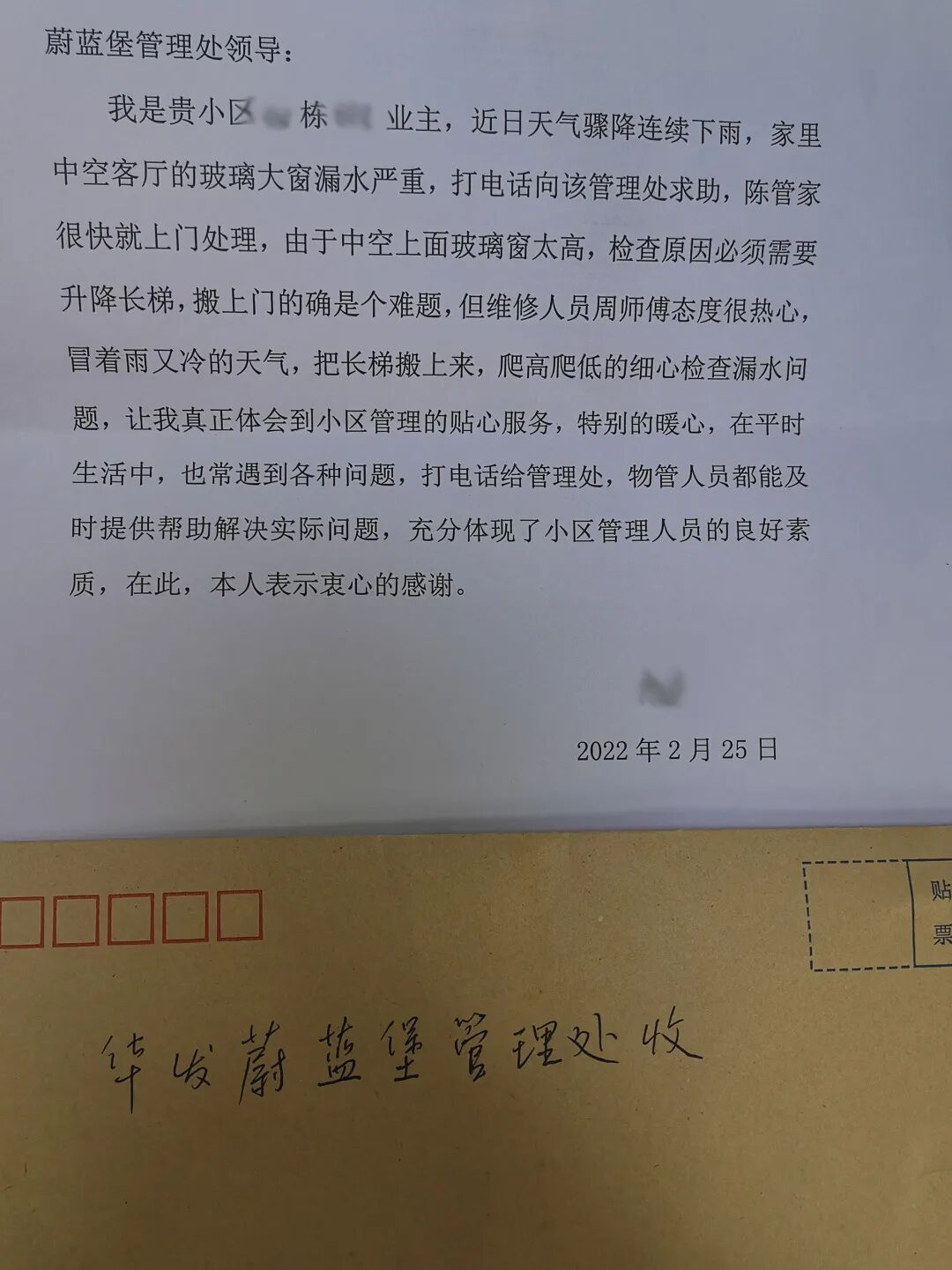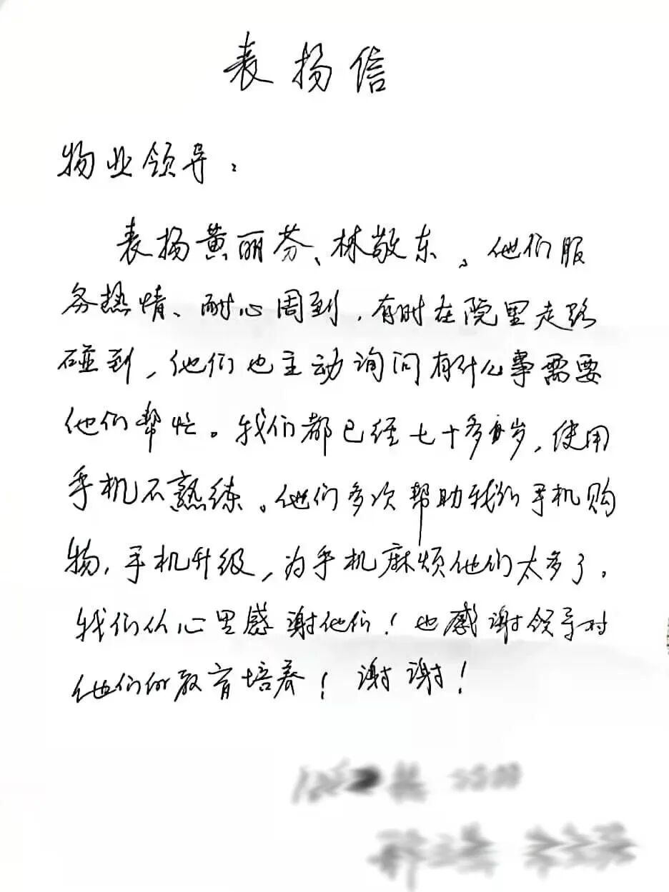来自企事业单位、业主的表扬