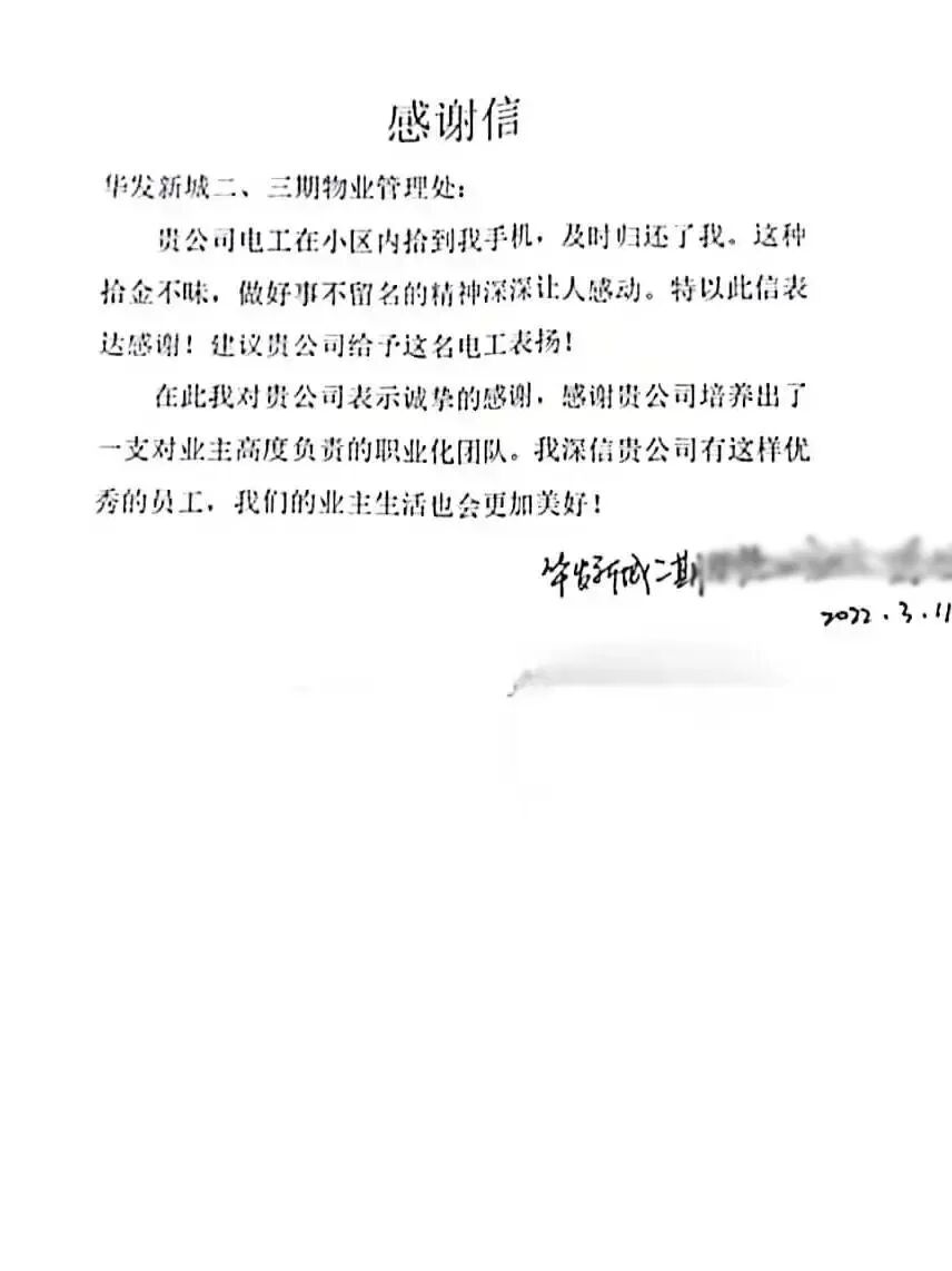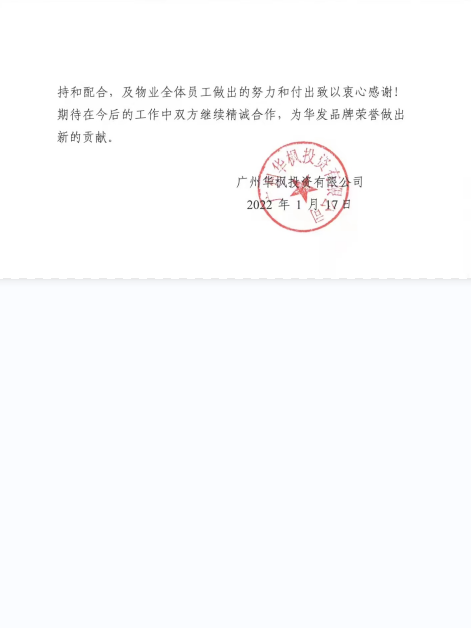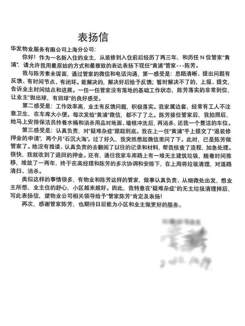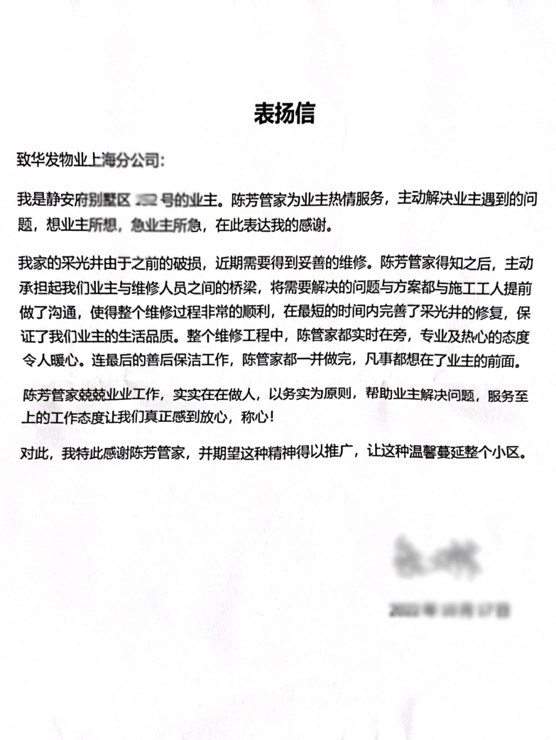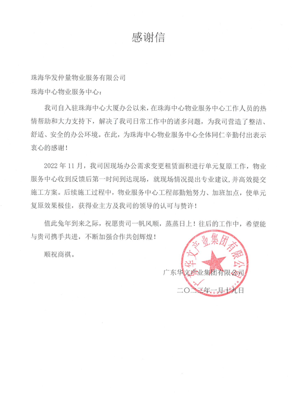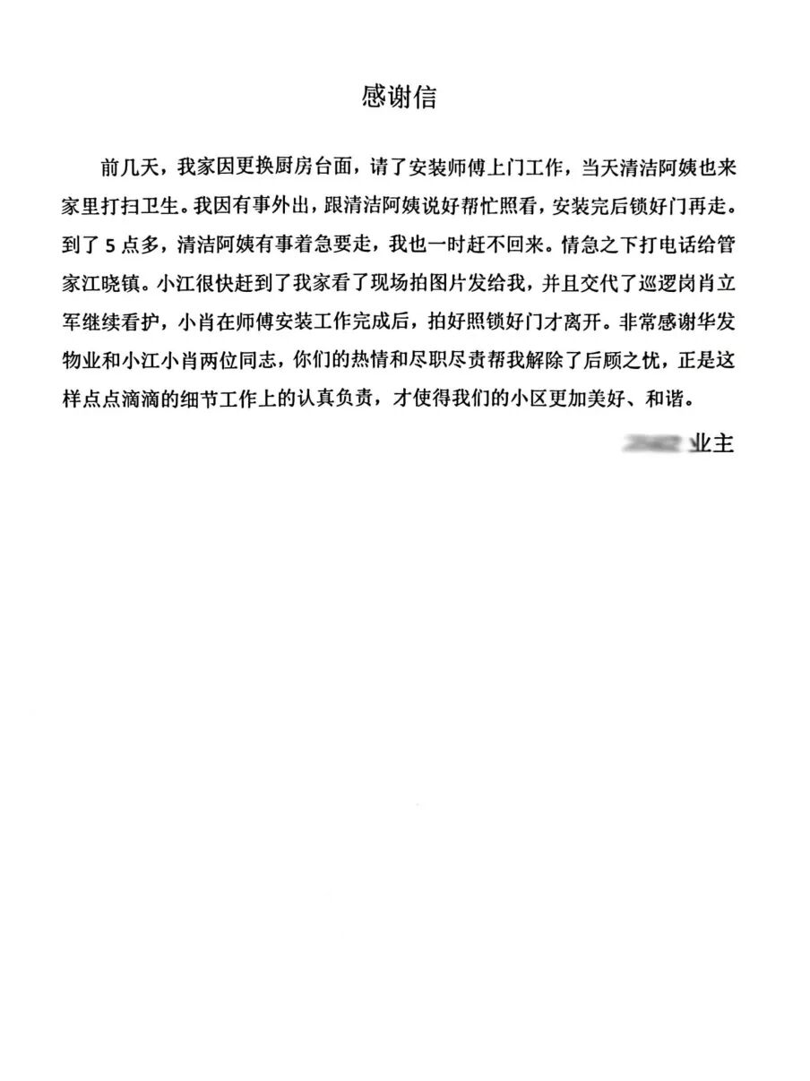 // 珠海华发新城四六期业主表扬