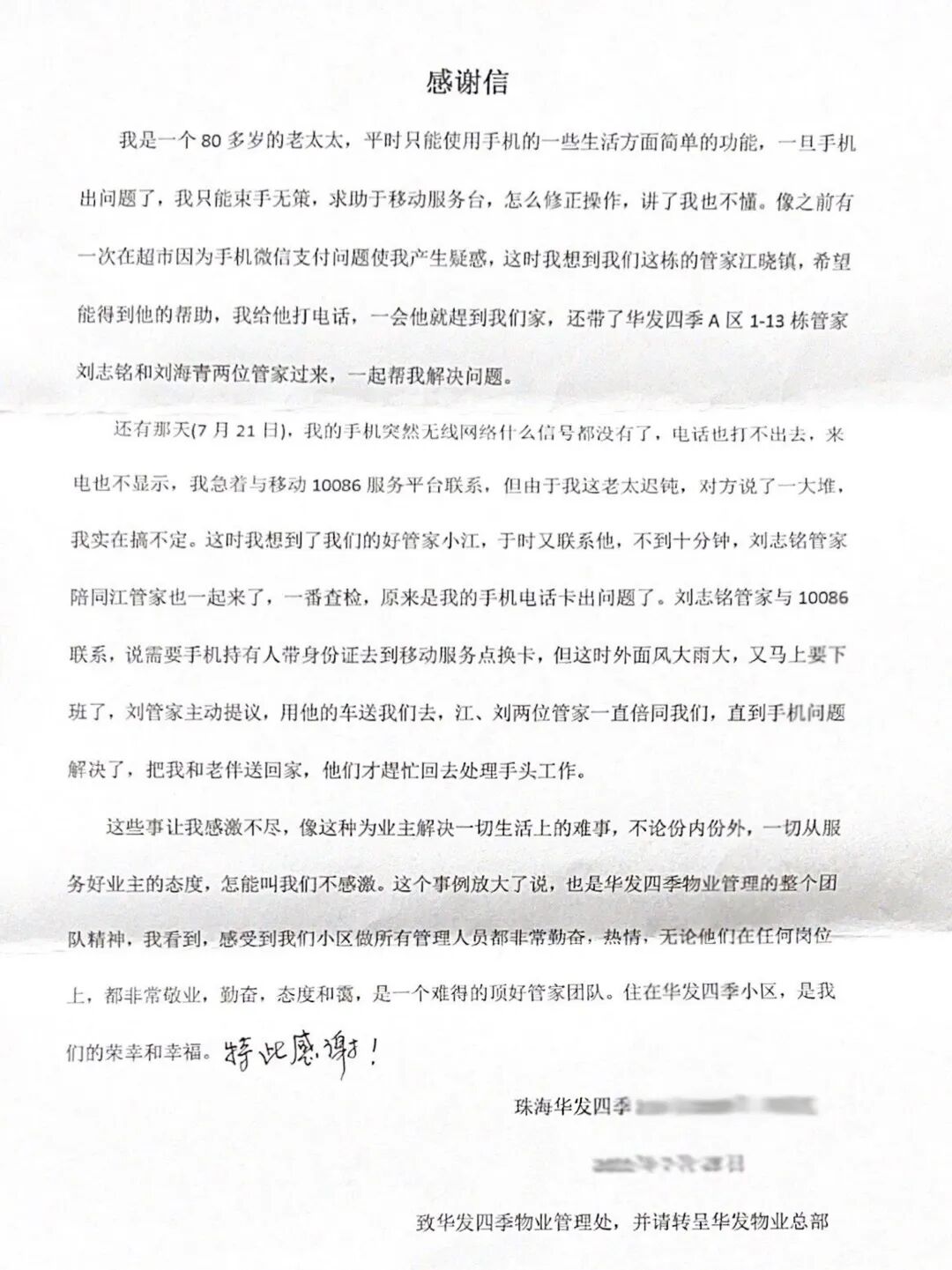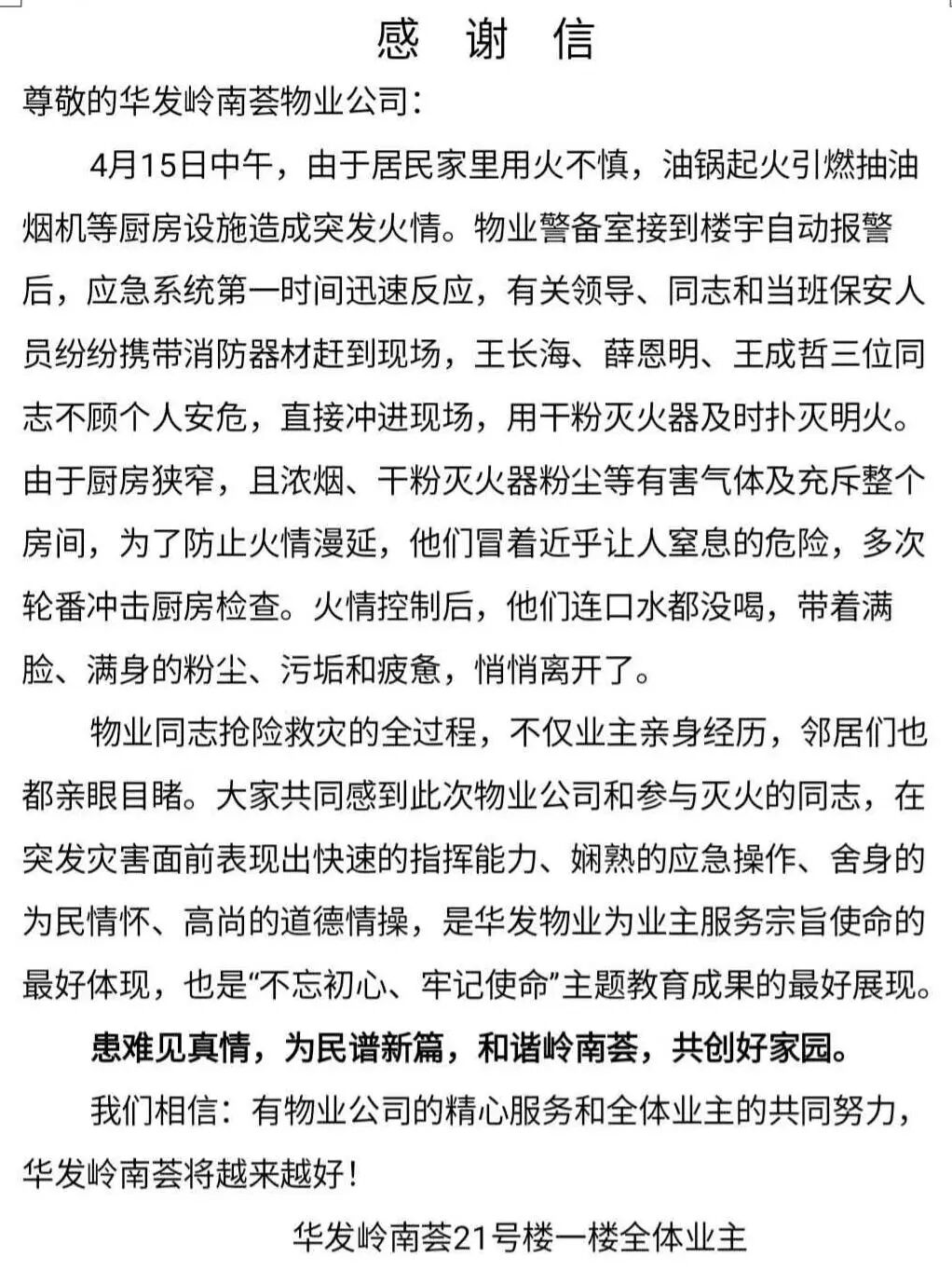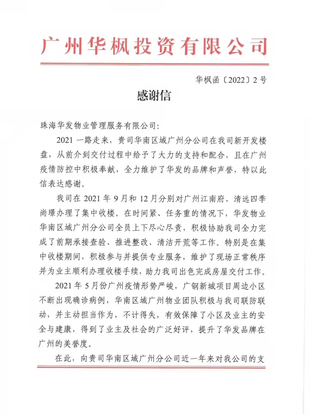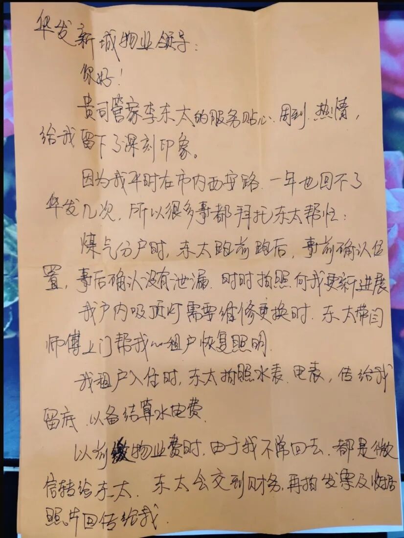 // 珠海华发新城四六期业主表扬