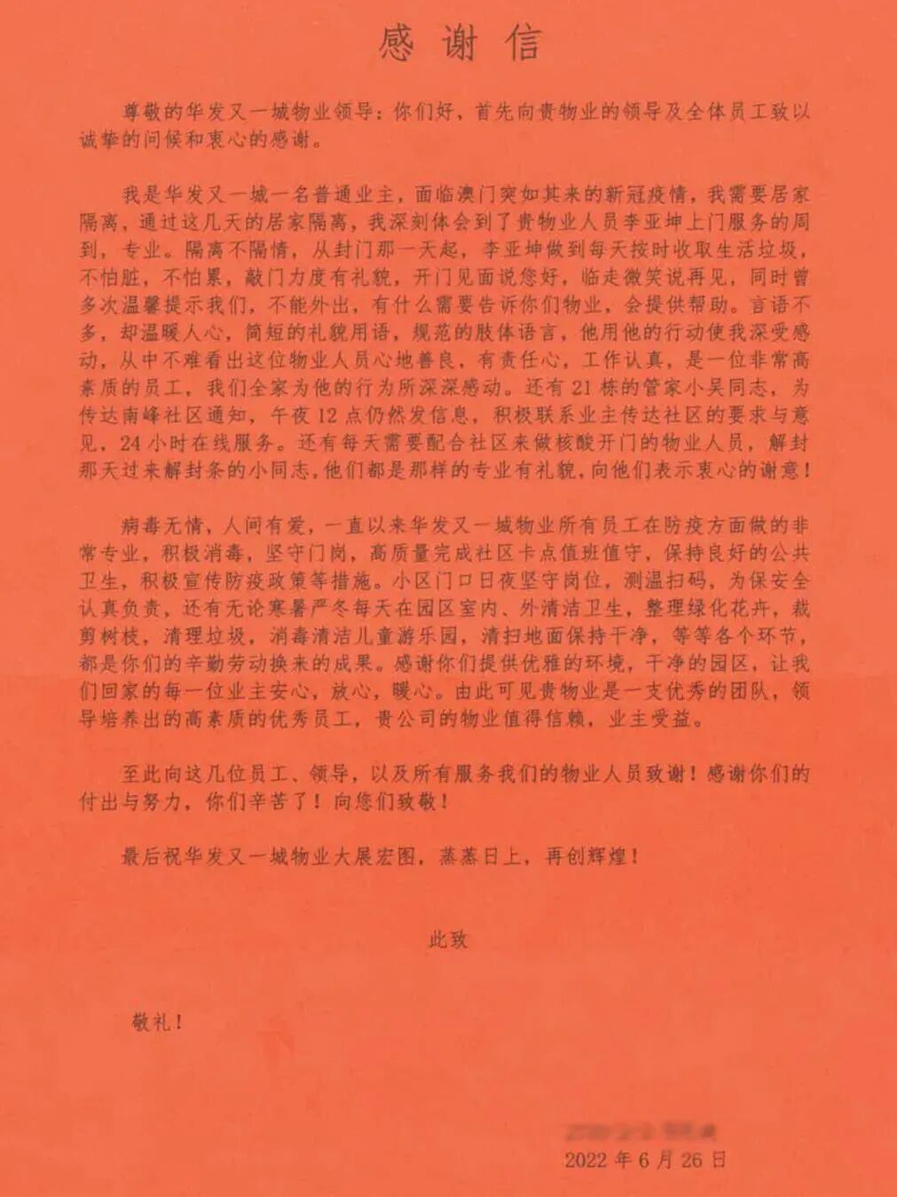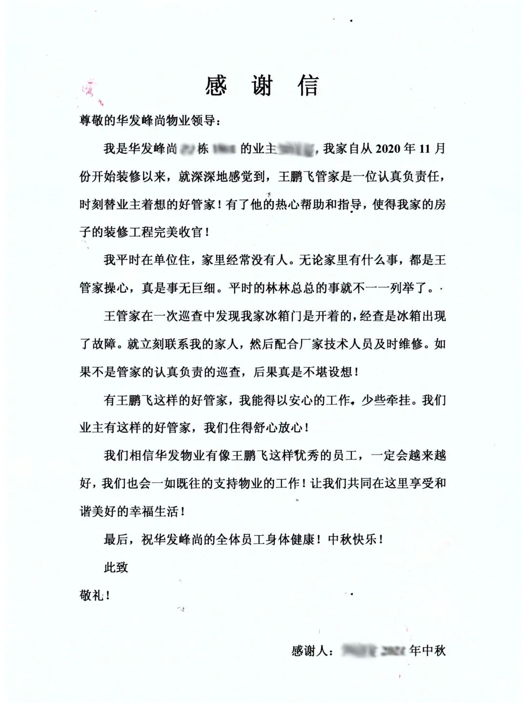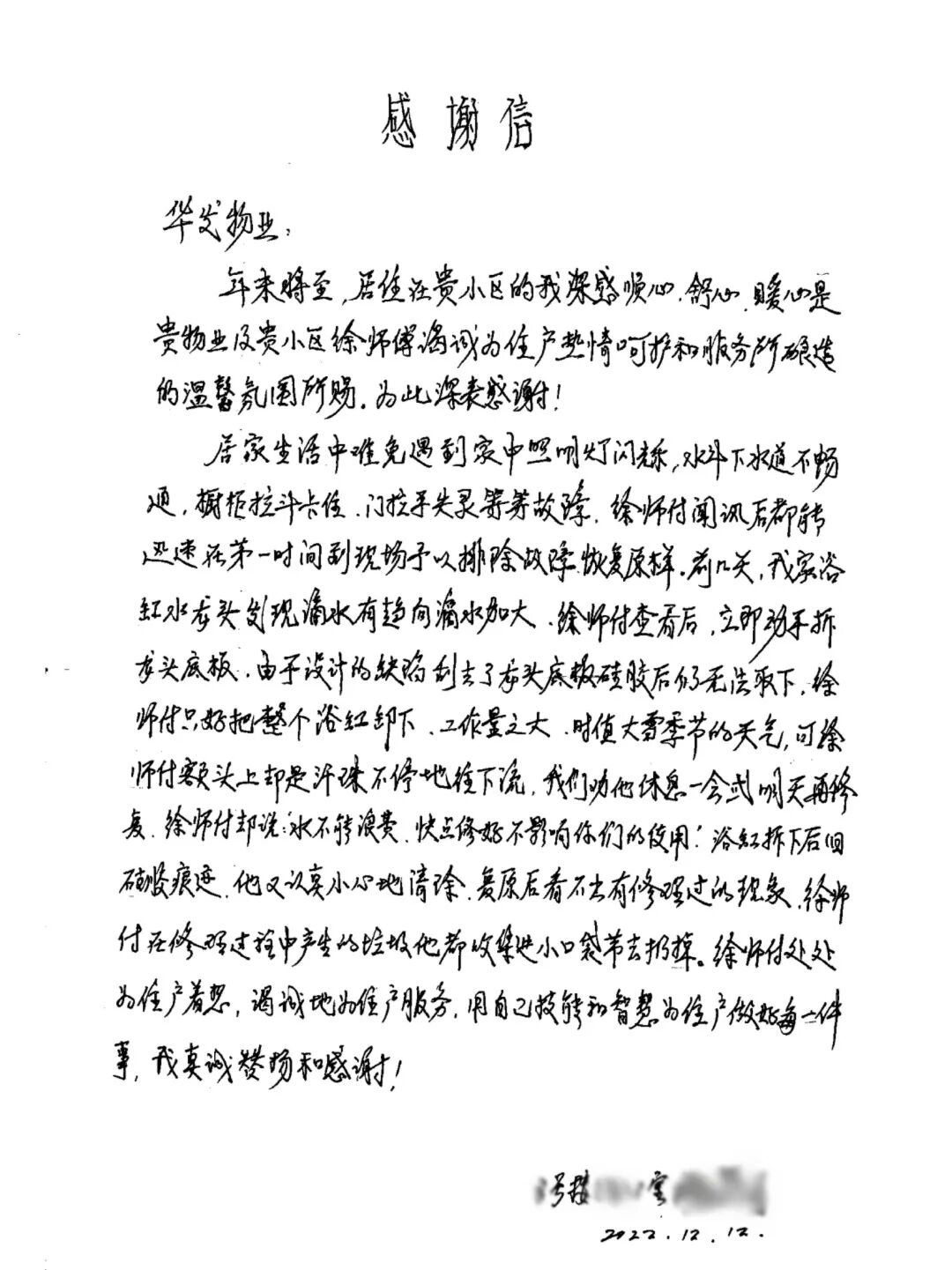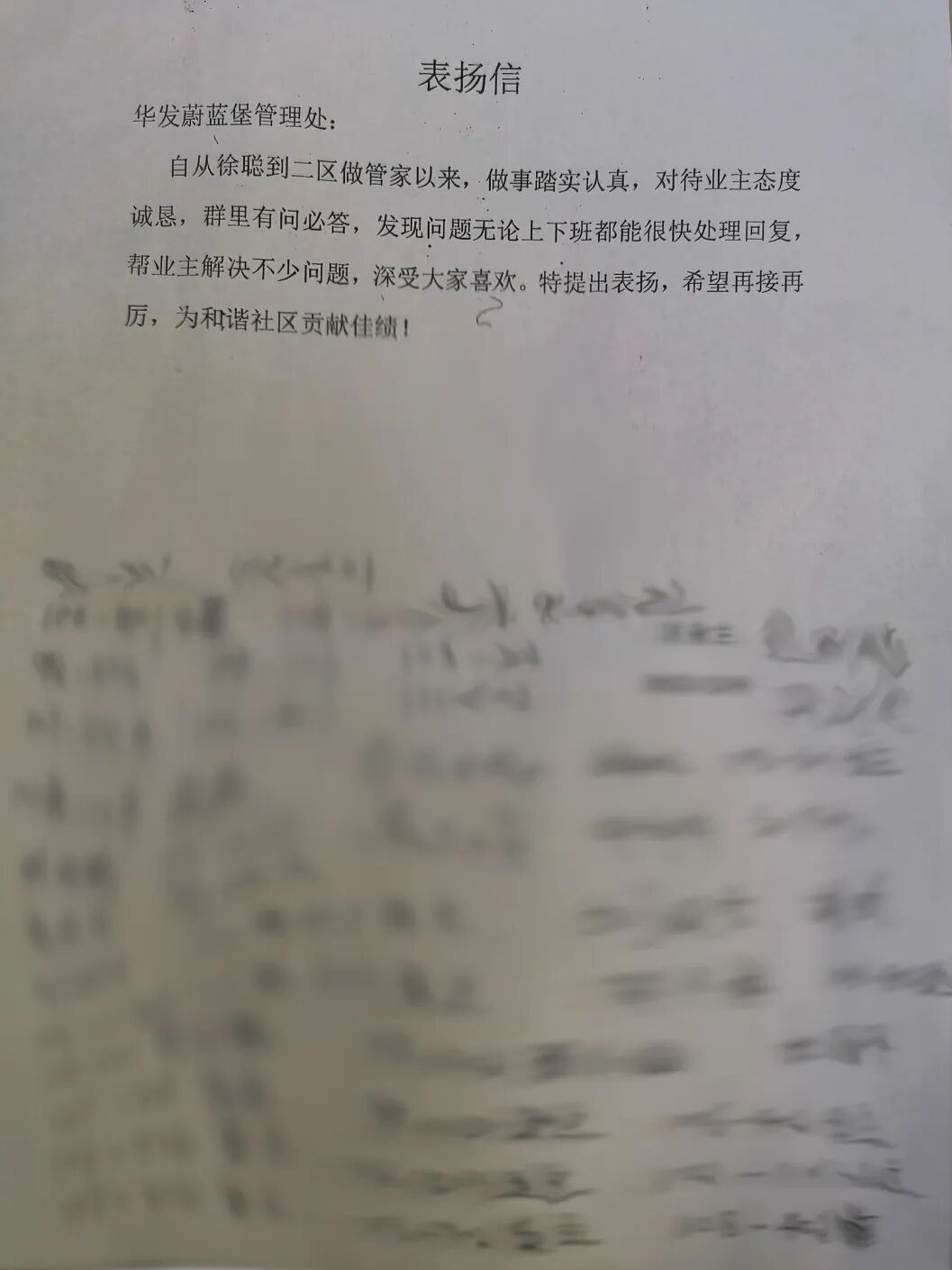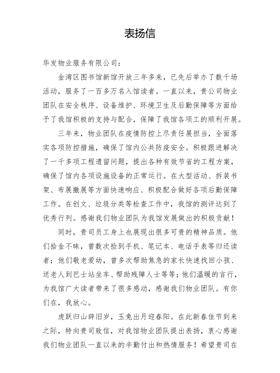 // 珠海华发新城四六期业主表扬